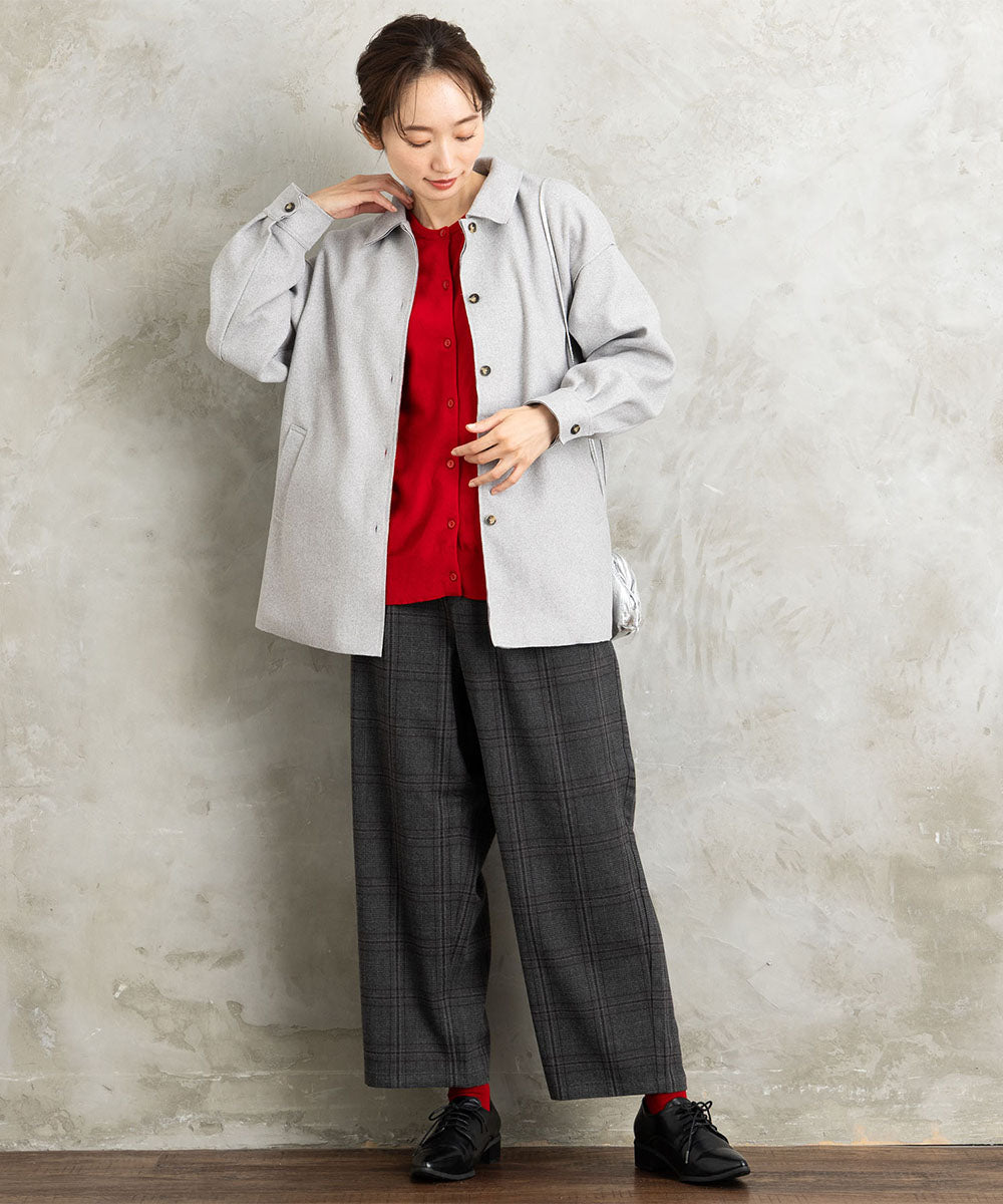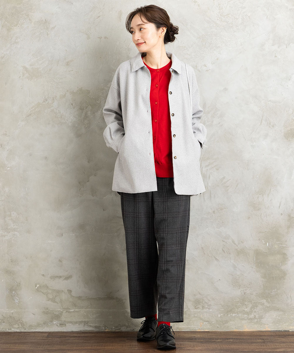 きれいめにもカジュアルにも合わせやすく、ワードローブに一枚あると重宝するアイテムです。