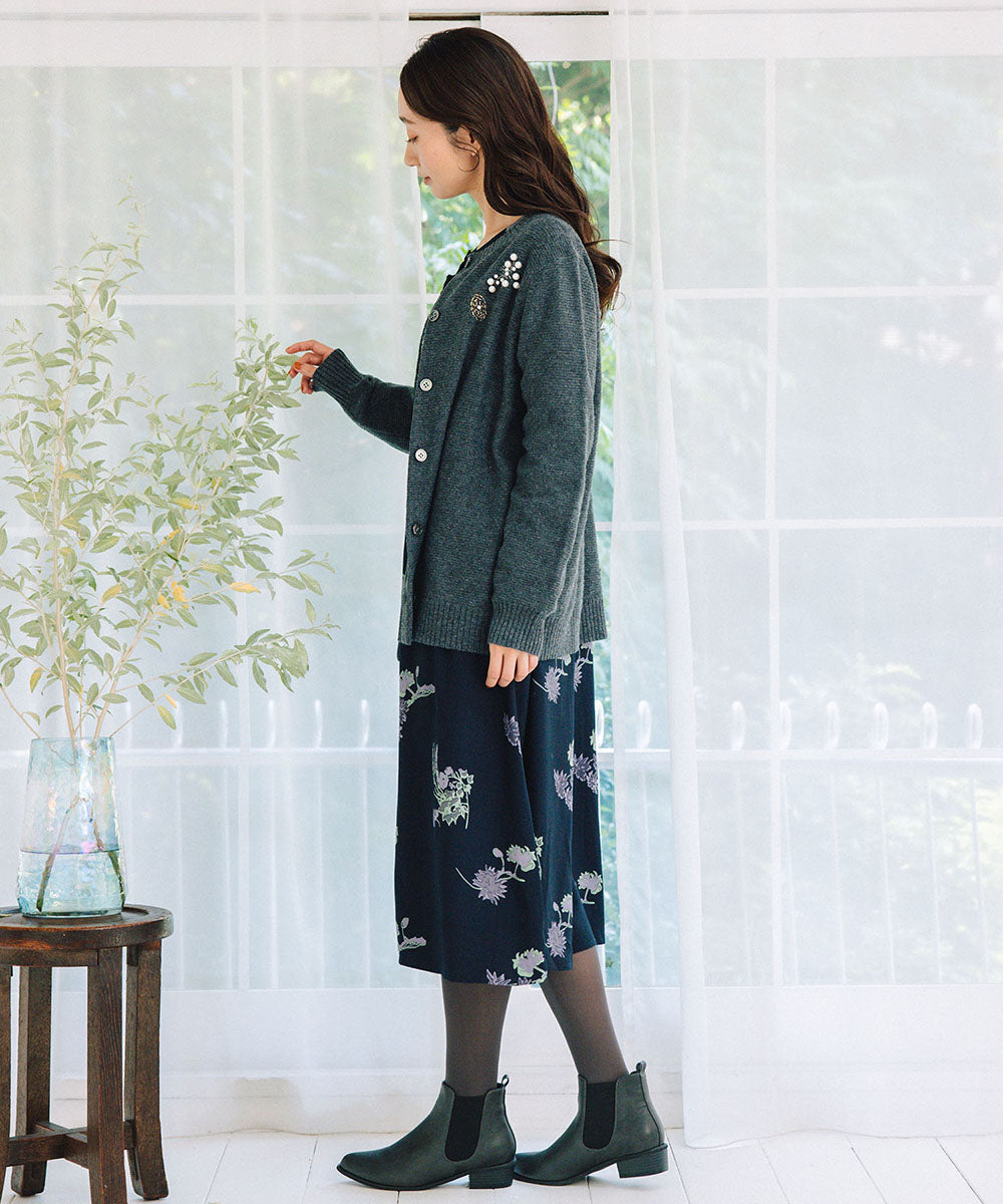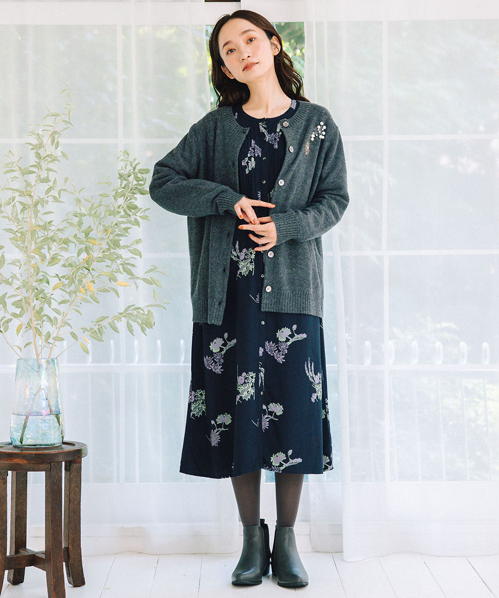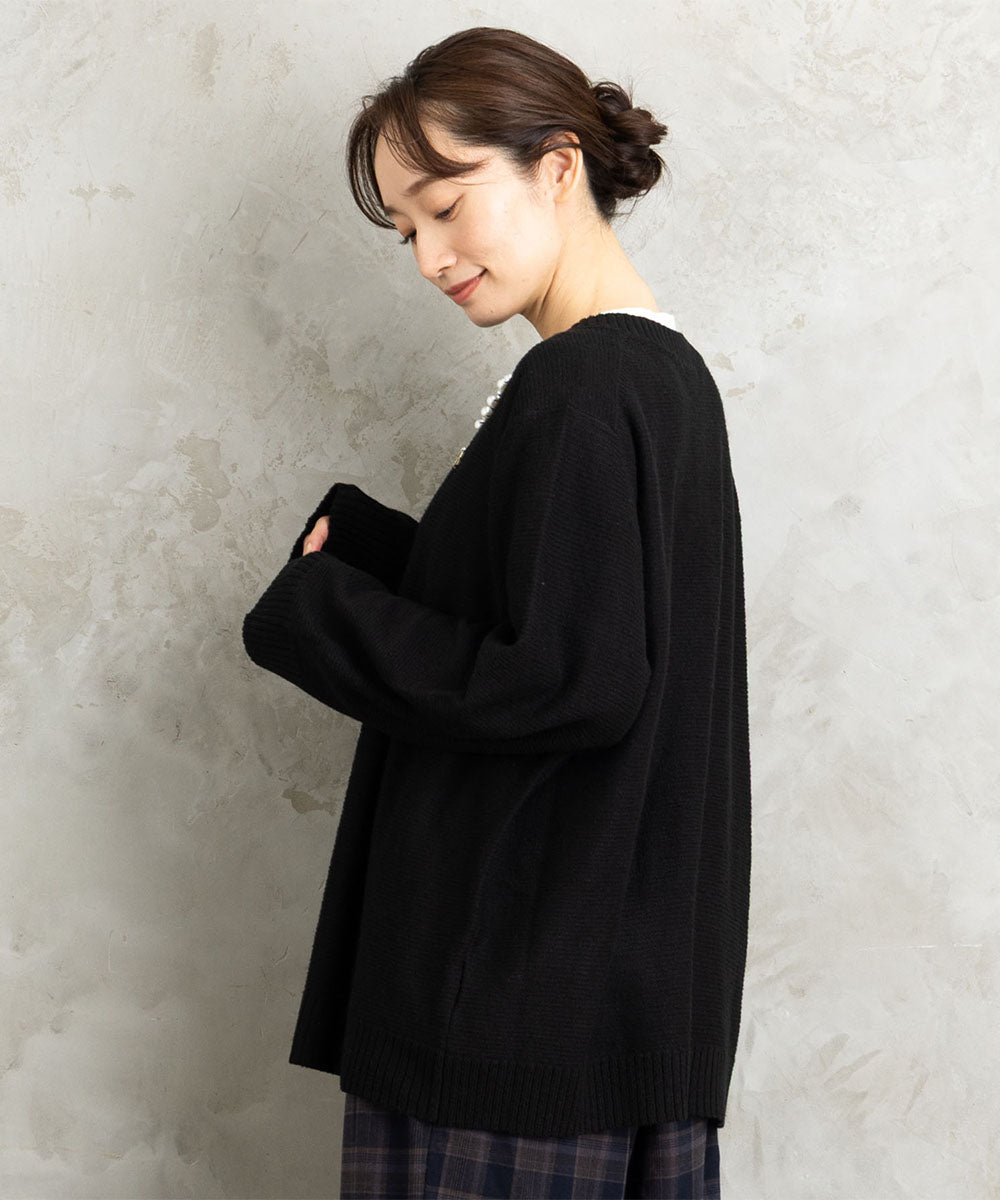 上品なビジューが胸元に輝く、アクセサリーいらずの主役カーディガン。