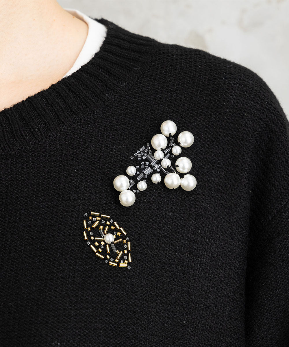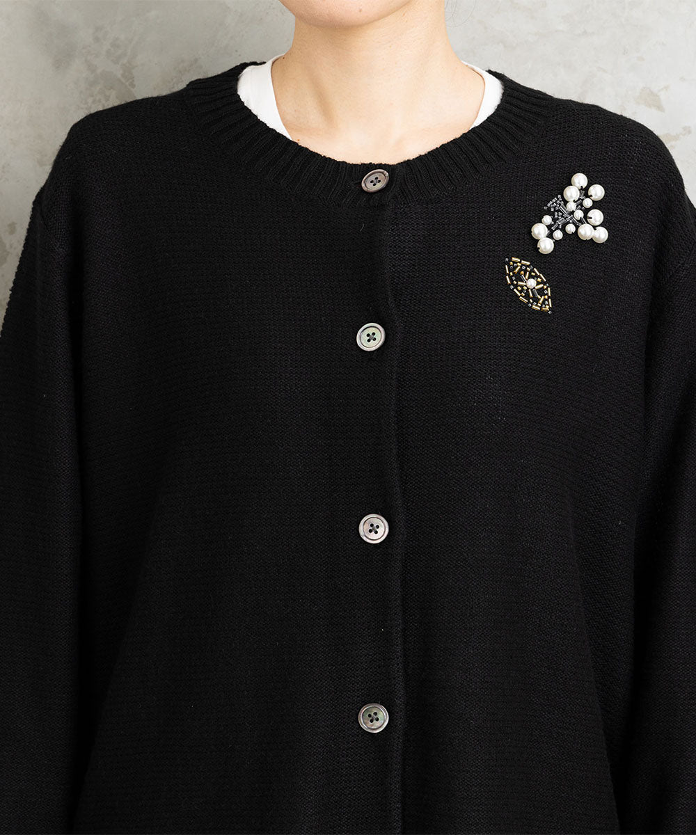 【華やかさを添える、ビジューブローチライクニットカーディガン】