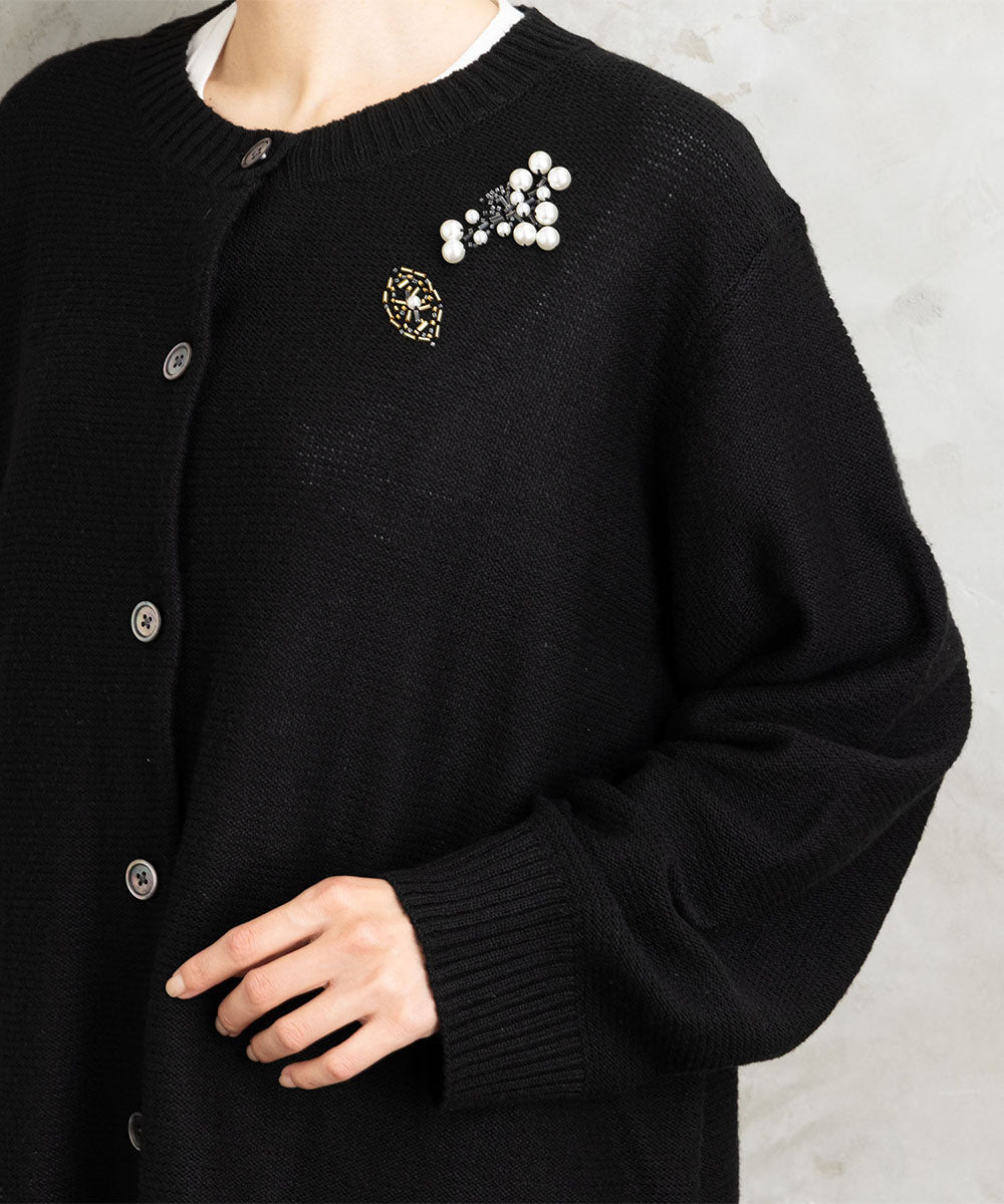 【華やかさを添える、ビジューブローチライクニットカーディガン】