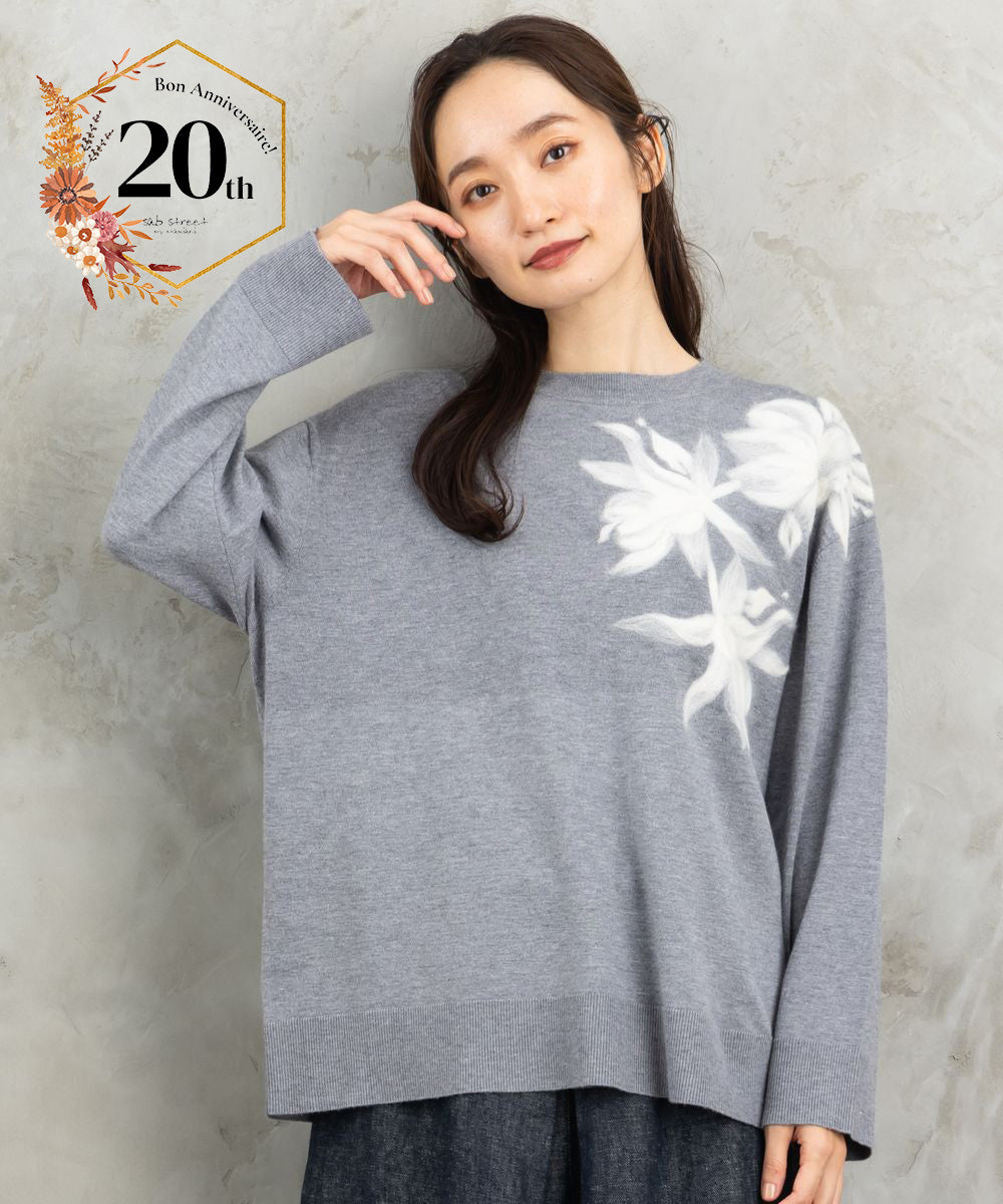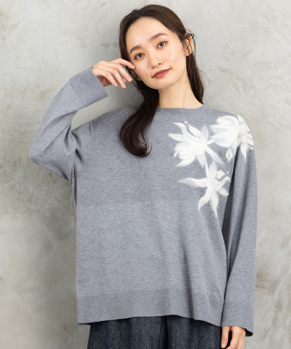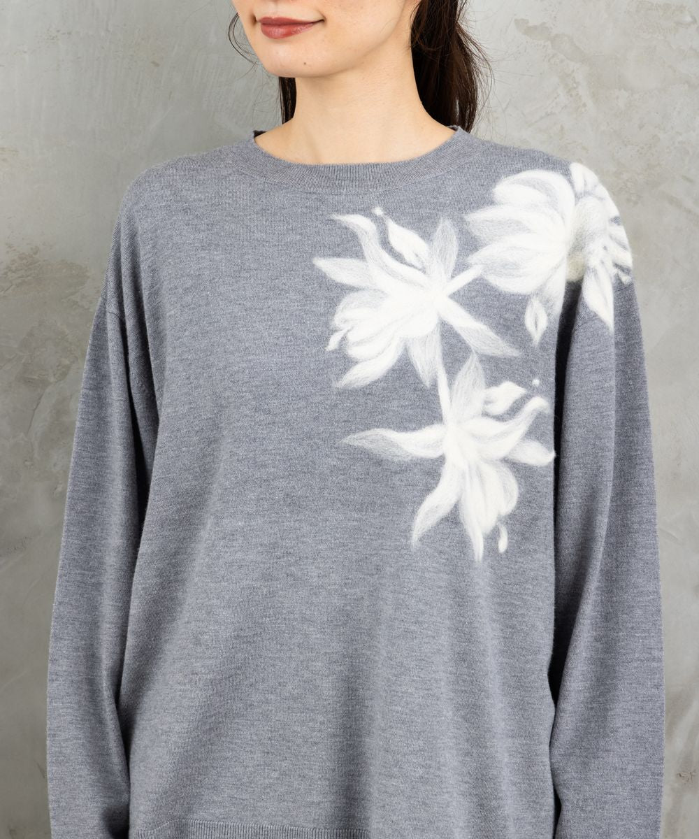 21号(6L~) (ロジーク) ニードルパンチフラワーモックネックニット