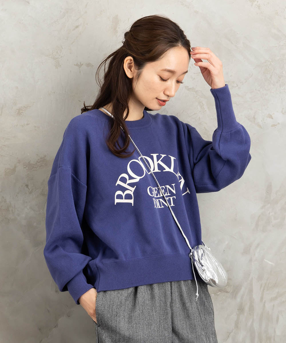 大人が着やすいロゴプリントがポイントのプルオーバーニット。