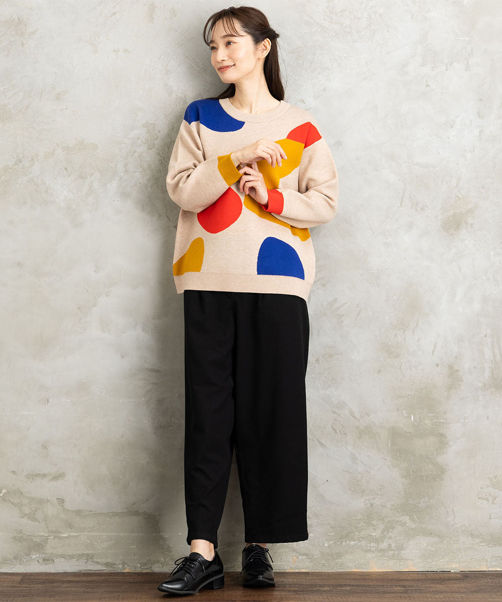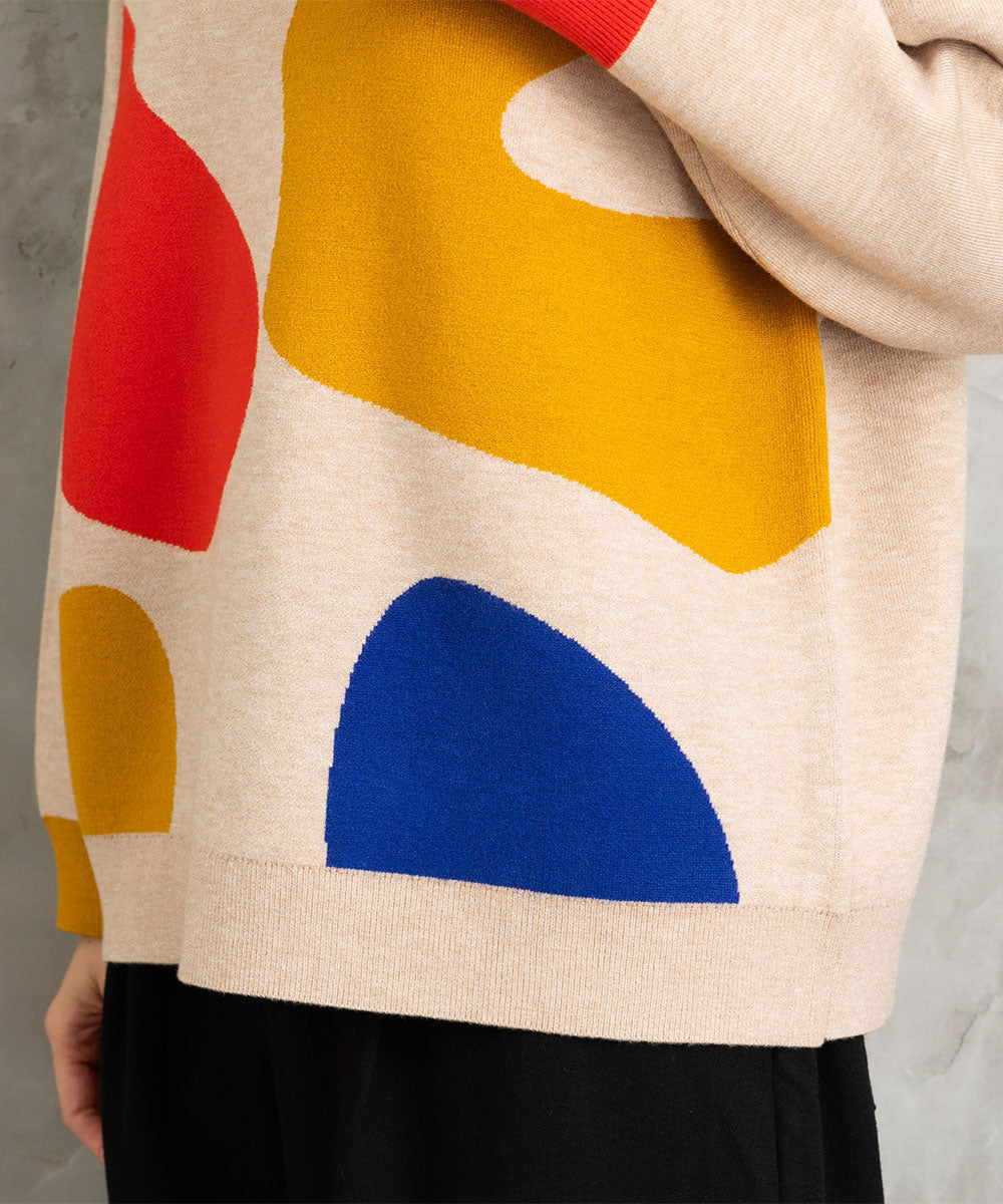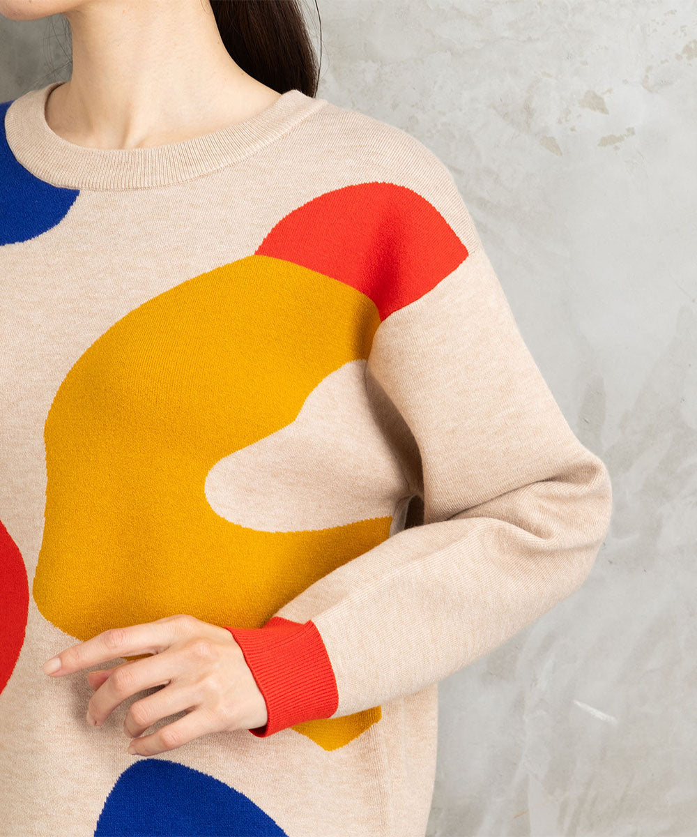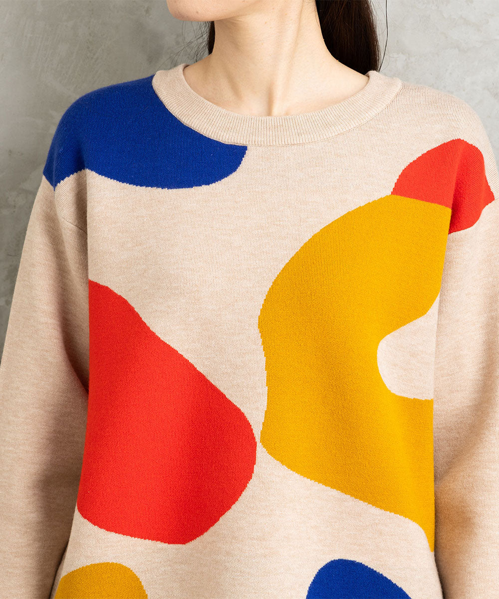 大胆なペイントタッチのカラーが目を惹く、アート感のあるニット。
