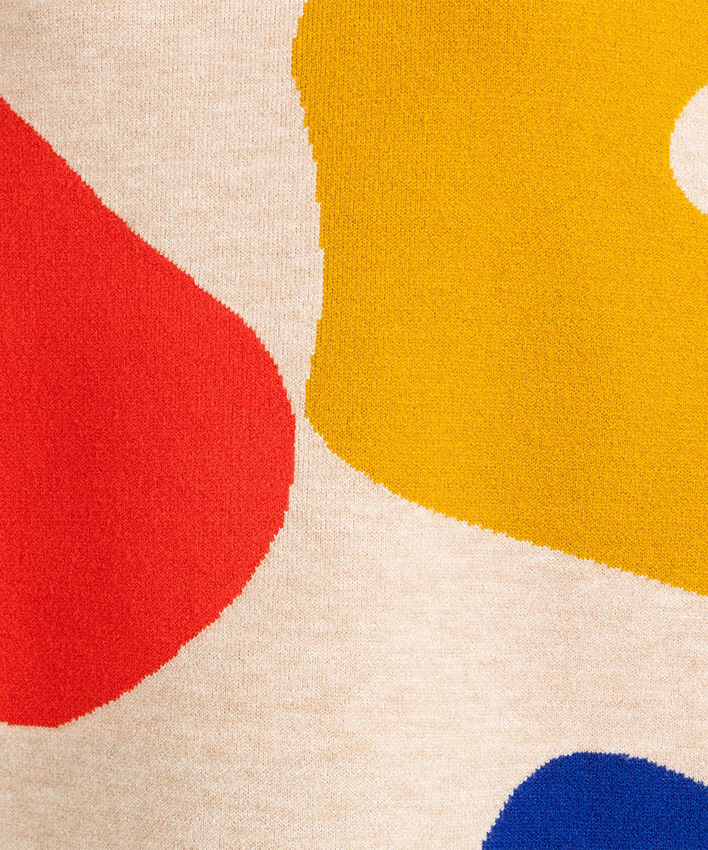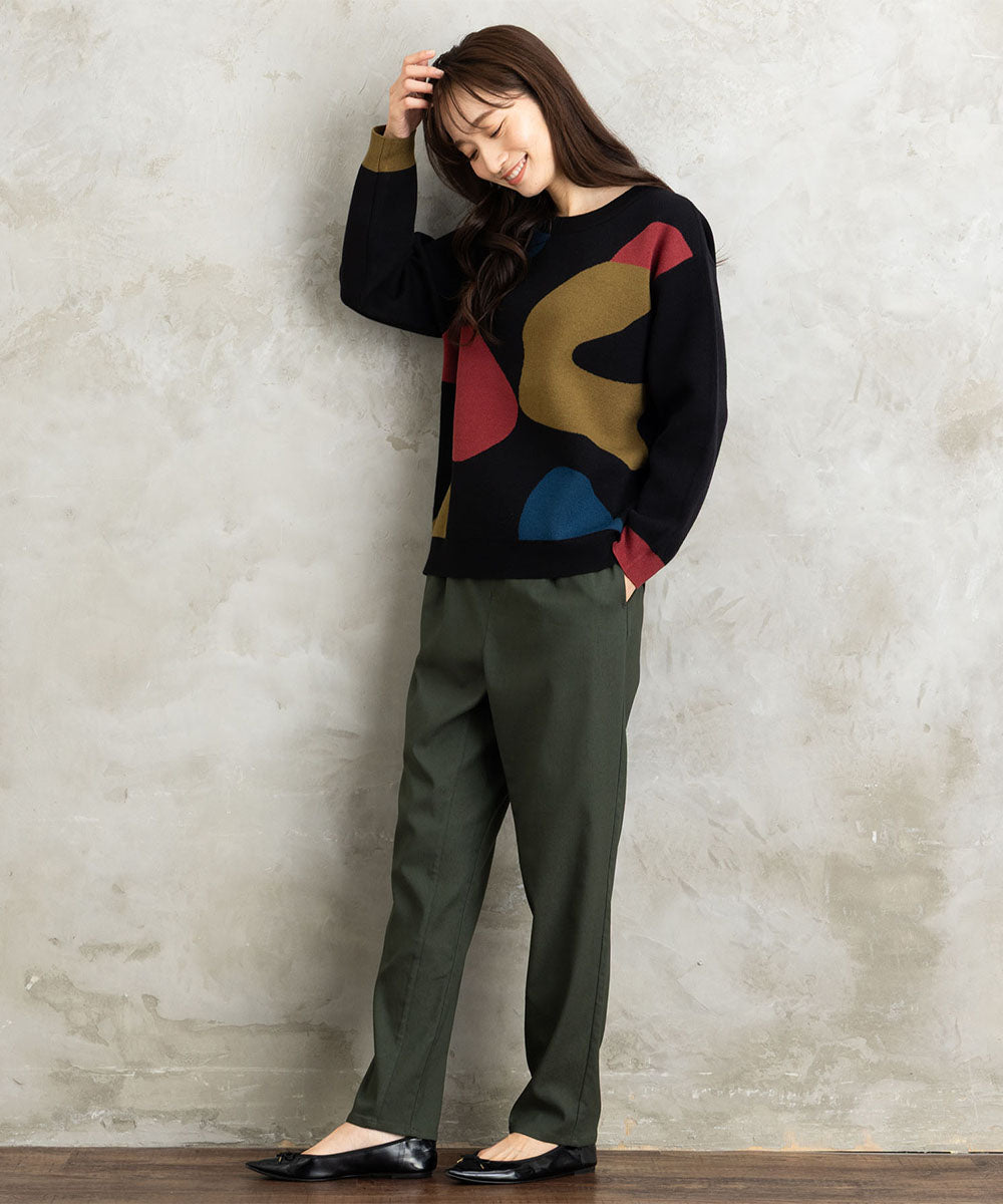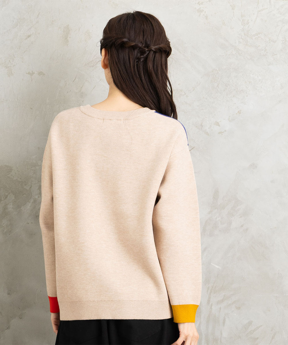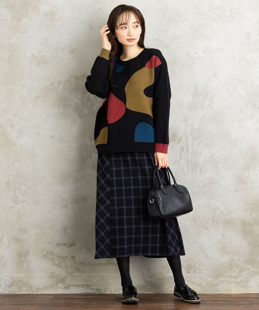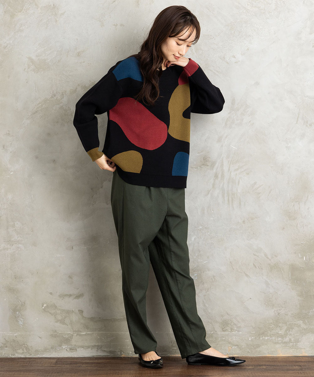 大胆なペイントタッチのカラーが目を惹く、アート感のあるニット。
