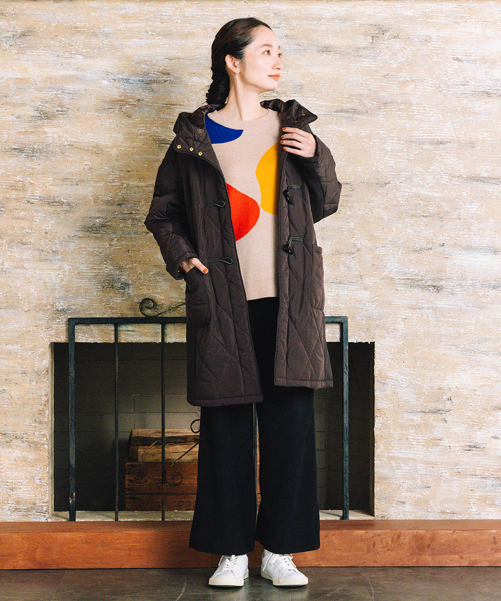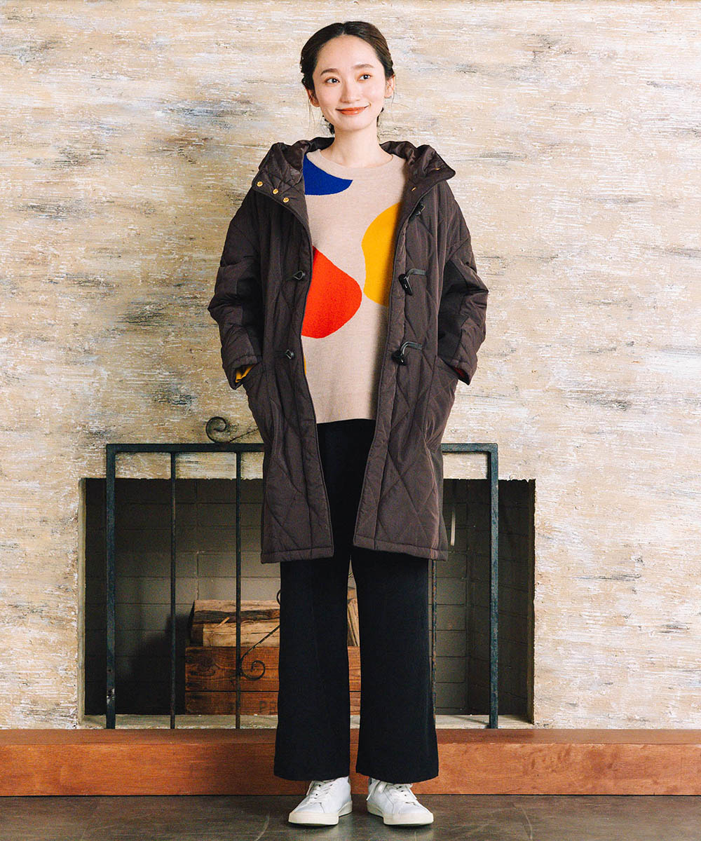 ベージュベースに映える配色が、着るだけで華やかさをプラスします。