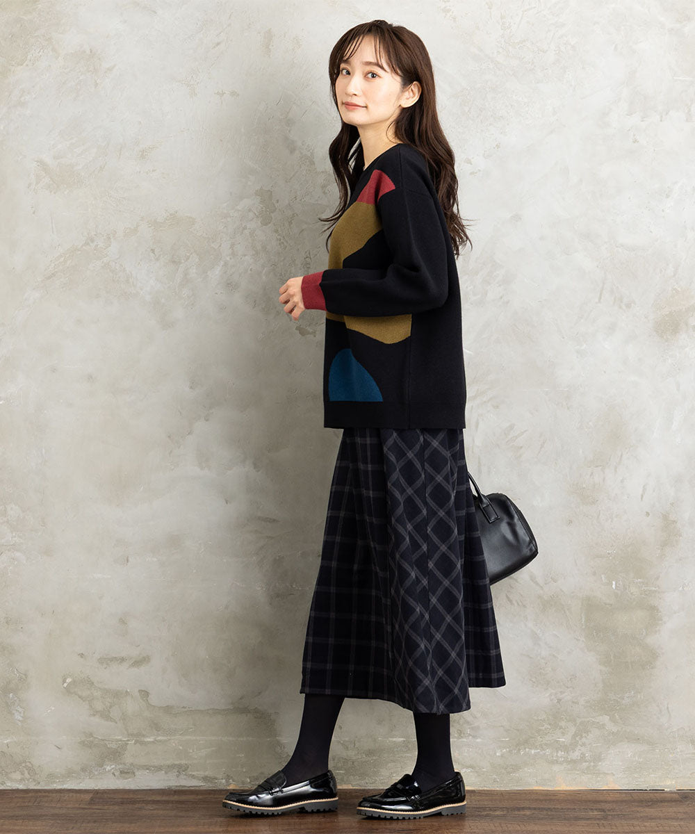 無地のスカートと合わせれば、大人っぽくバランスの取れた印象に。