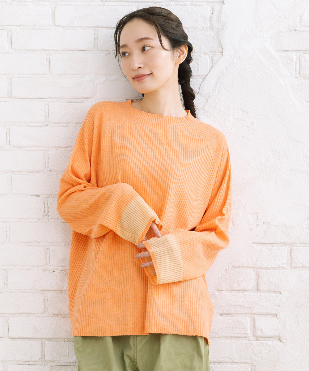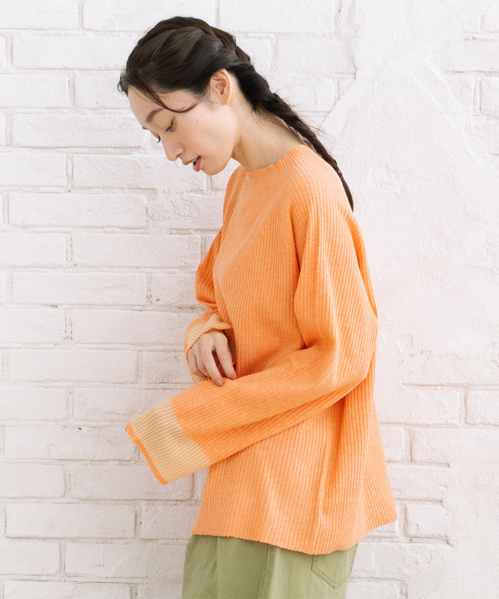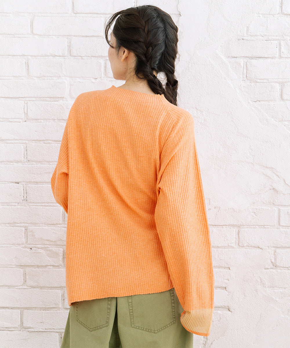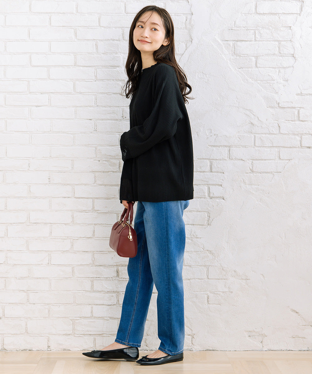 シンプルなリブニットに、袖のシアー切り替えが軽やかな表情をプラス。