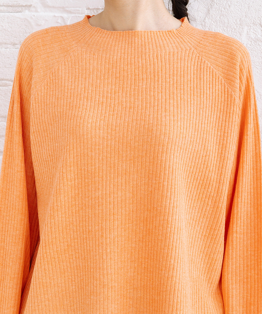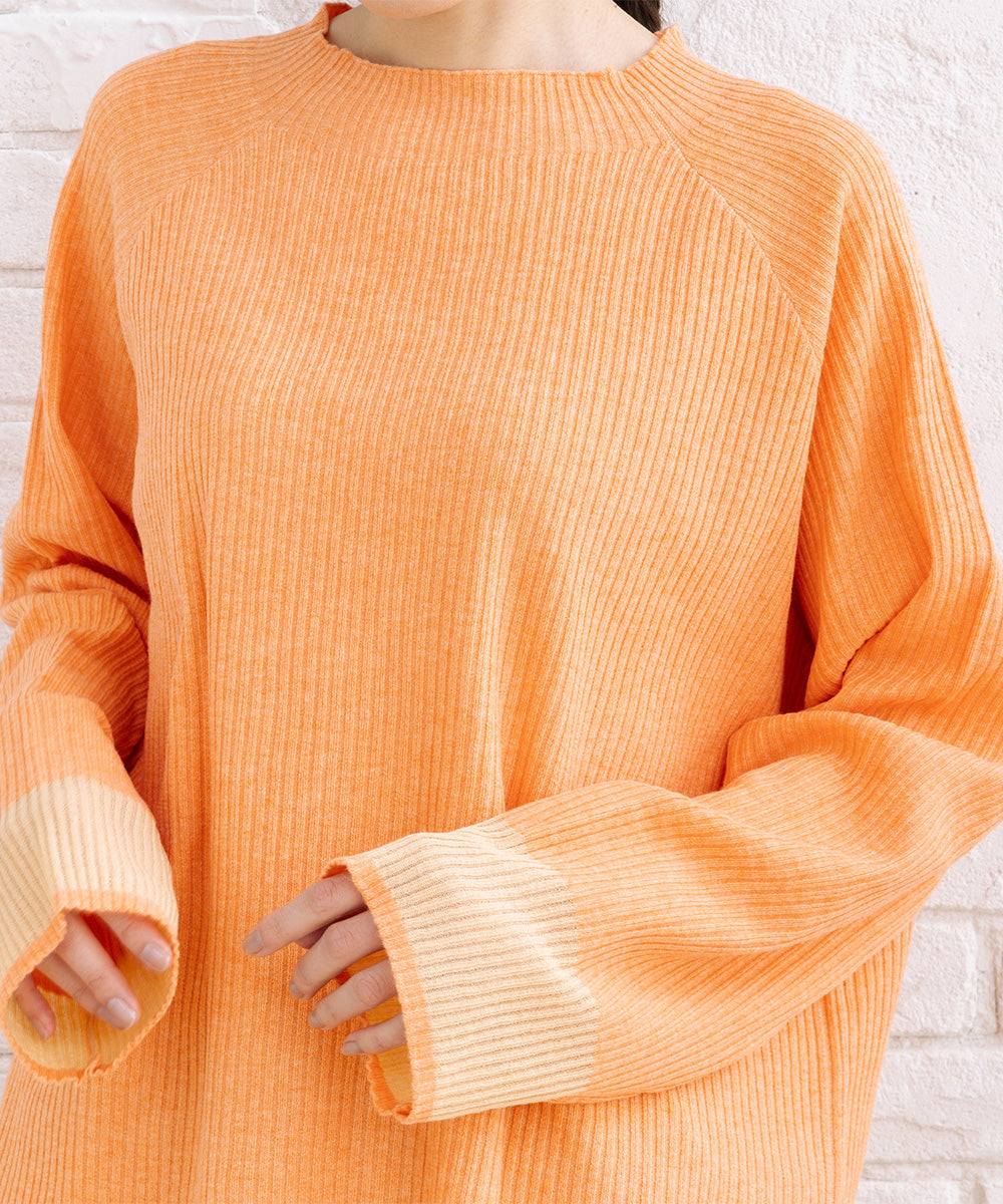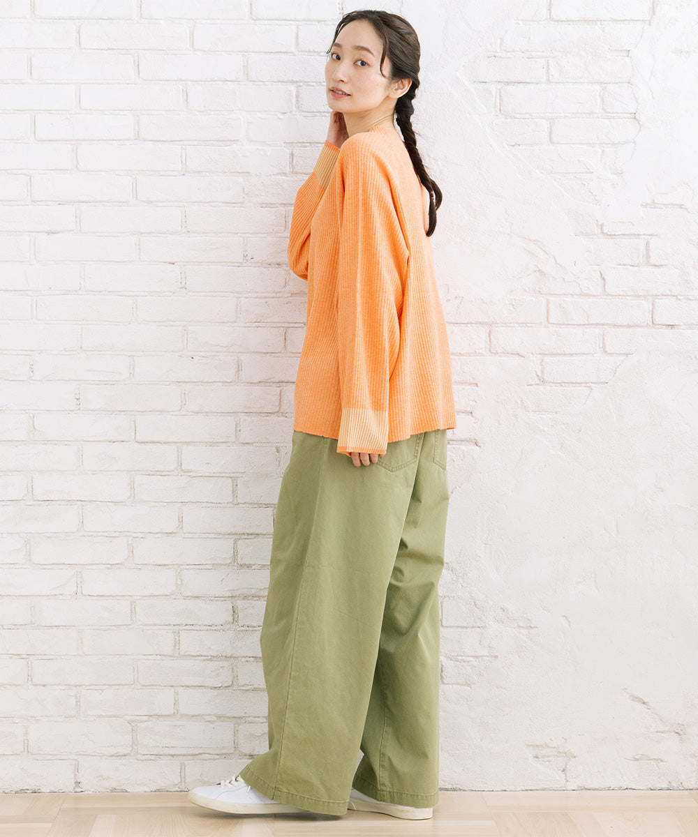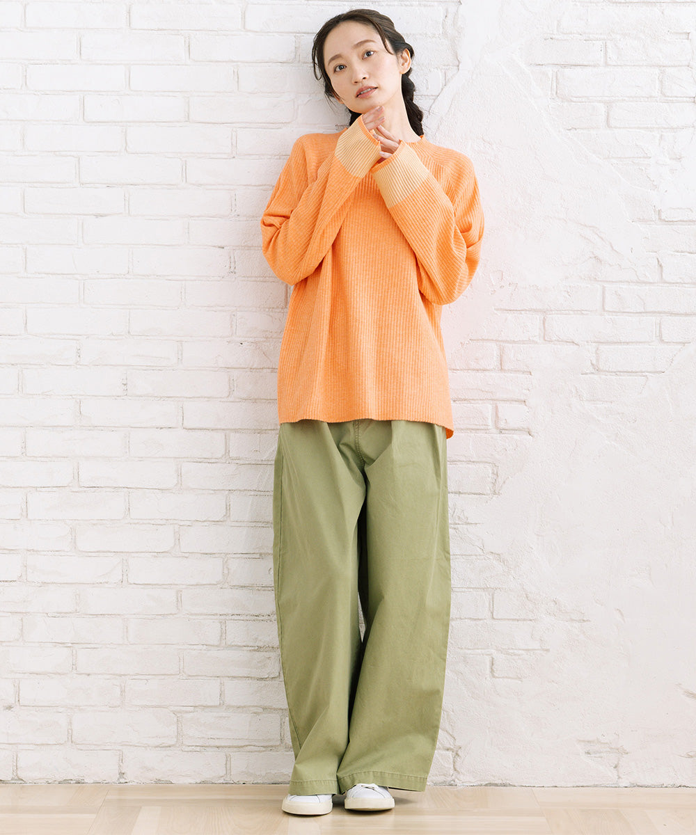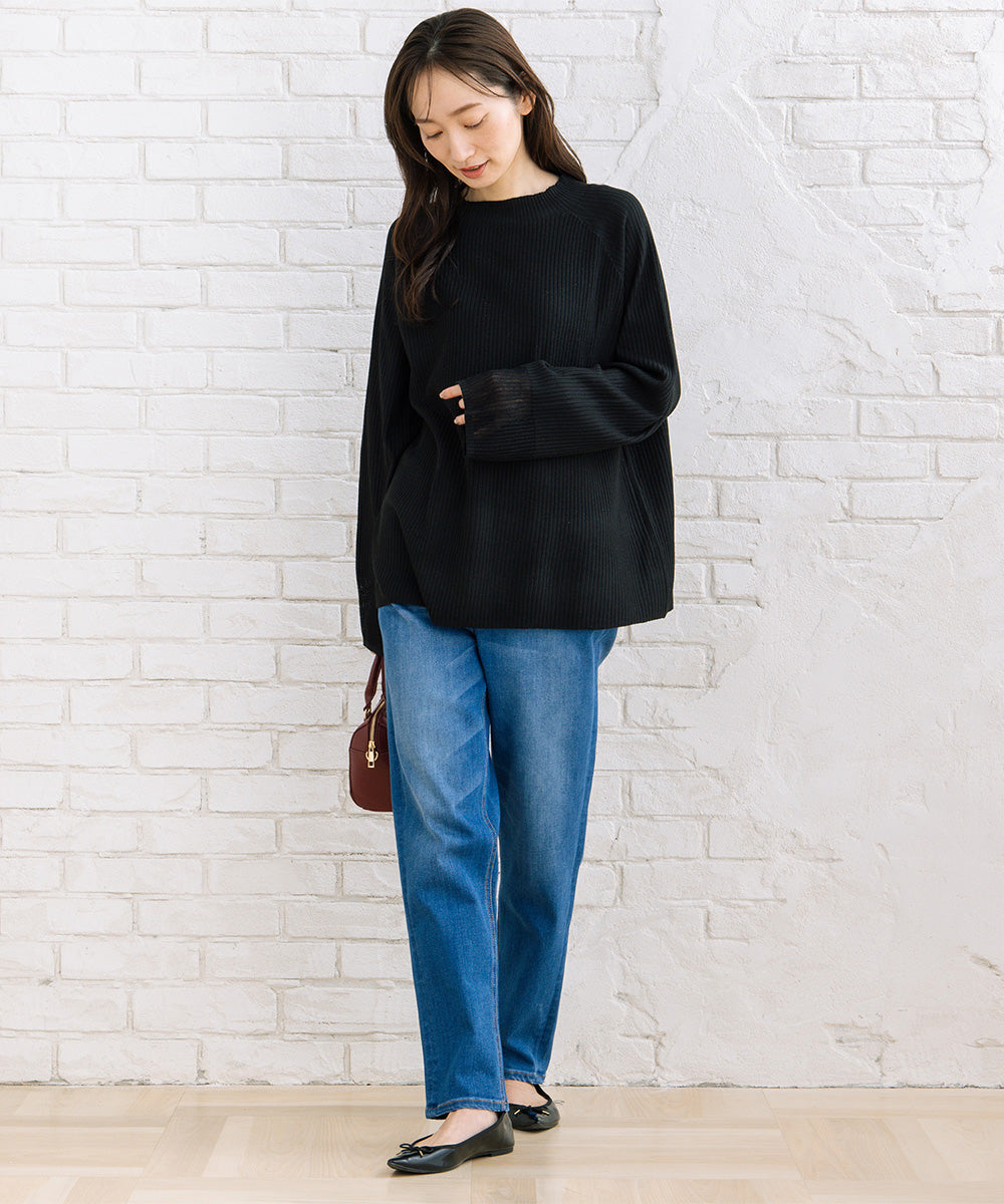 シンプルなリブニットに、袖のシアー切り替えが軽やかな表情をプラス。