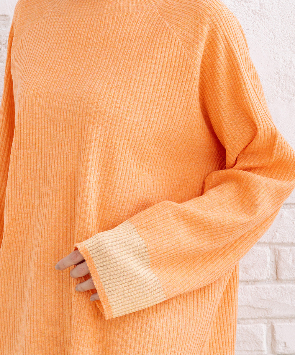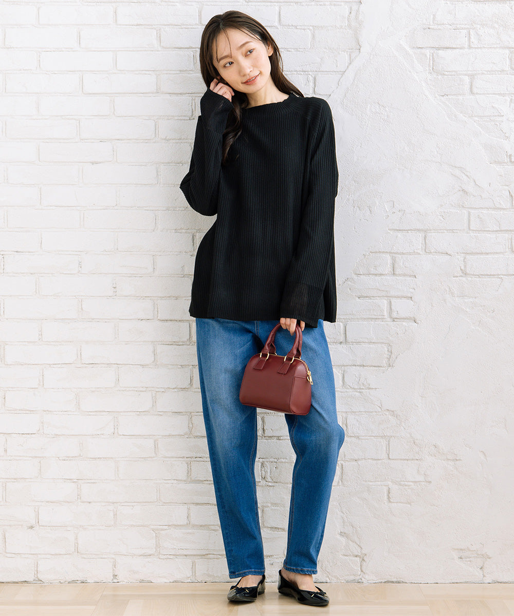 ・リブ編みが縦ラインを強調し、すっきり見え