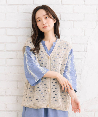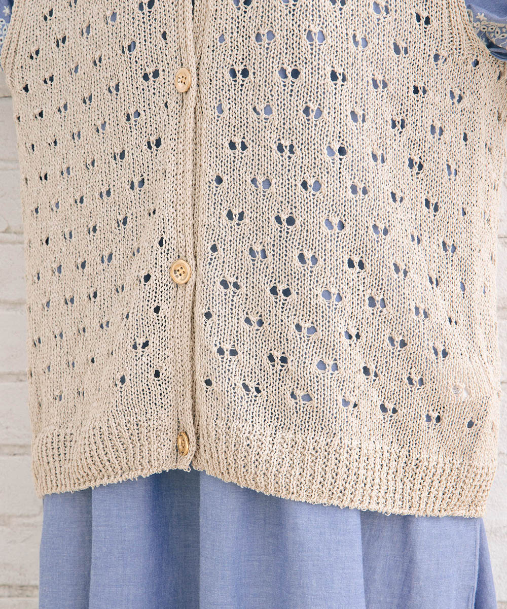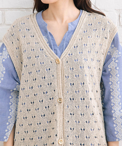 上質素材で涼やかなcamifineホールガーメントアイレットニットベスト。