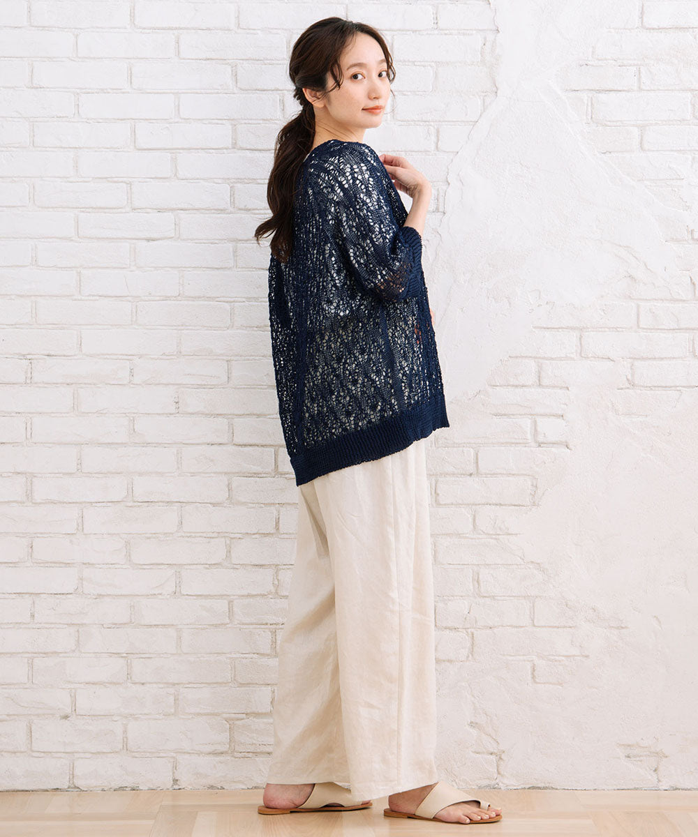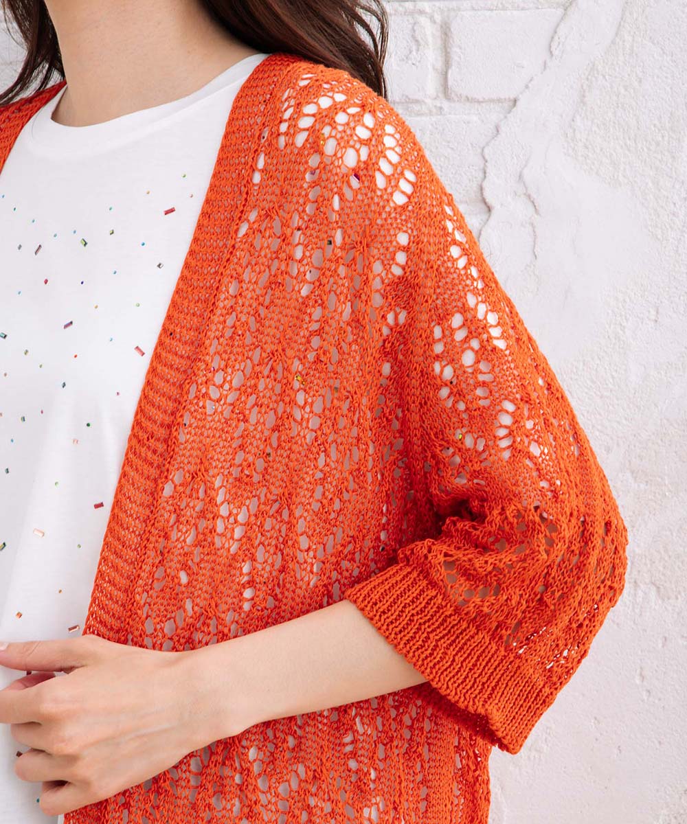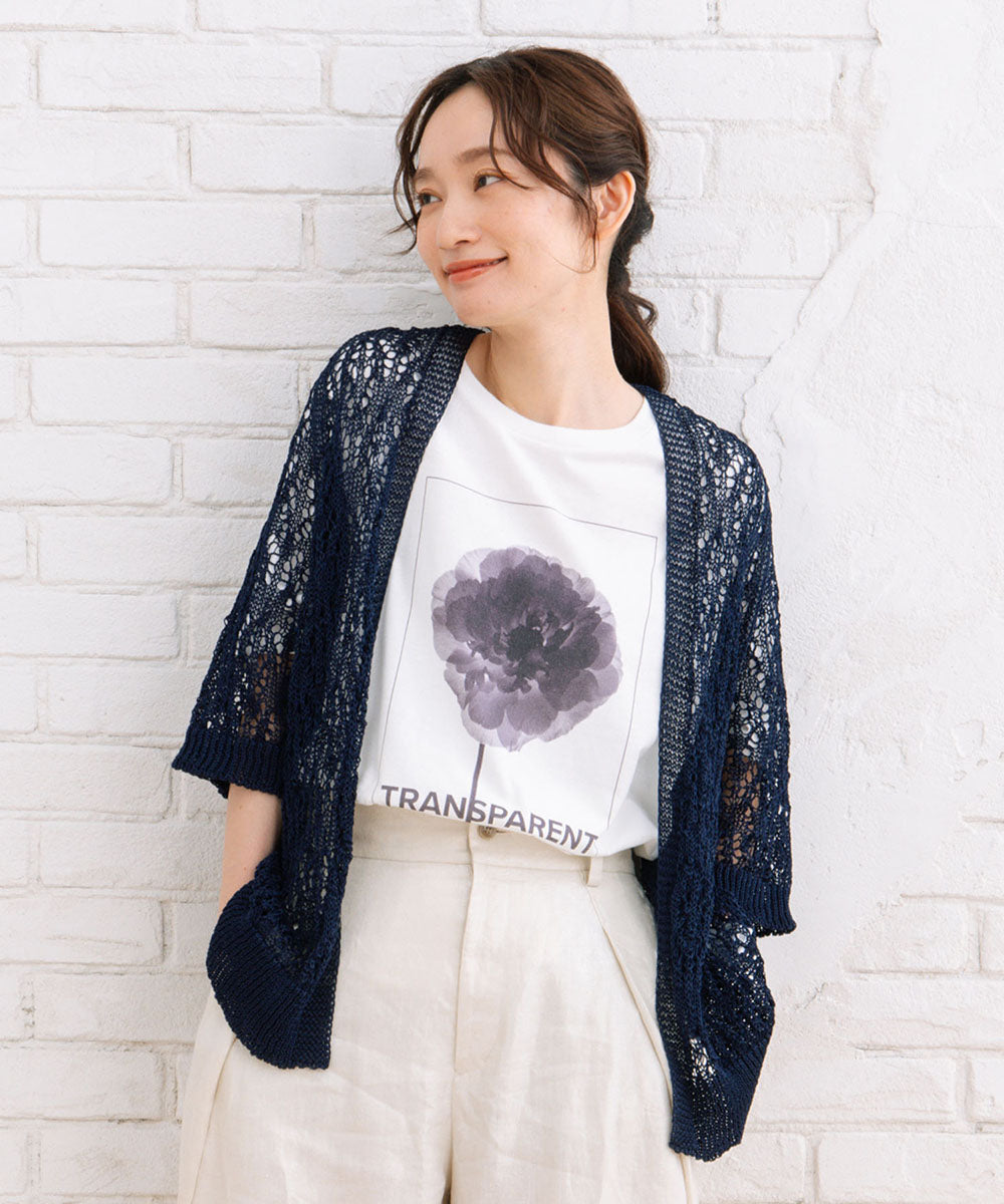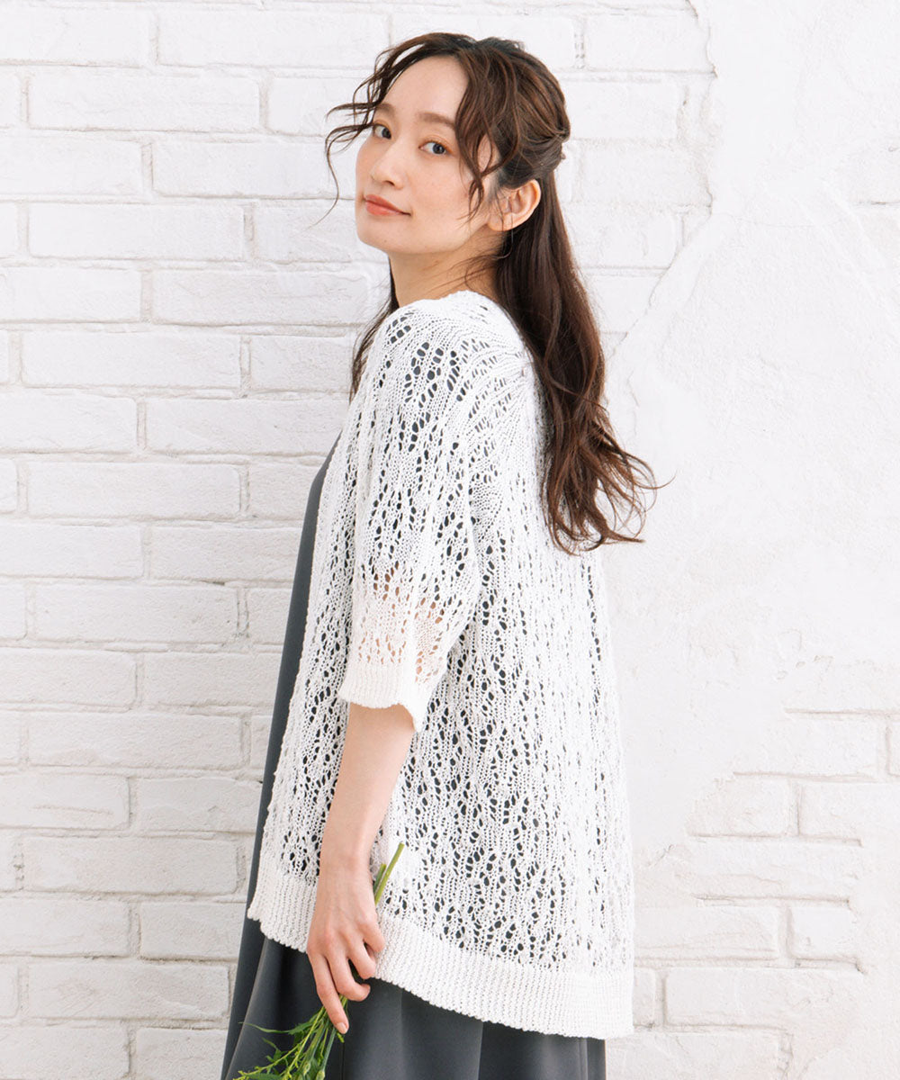 透かし柄編みで魅せる、大人のサマーニットカーディガン。