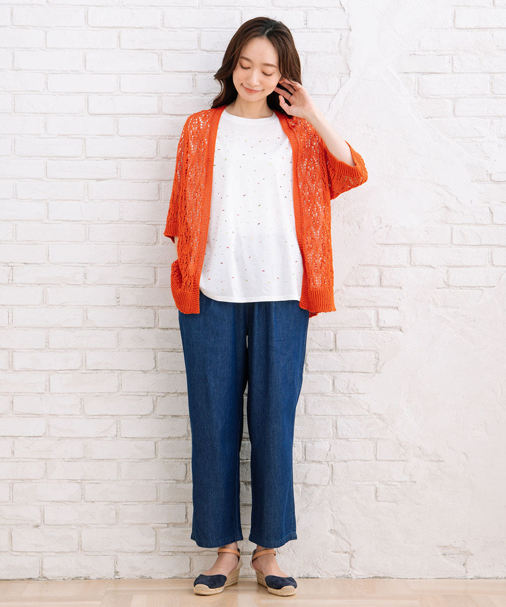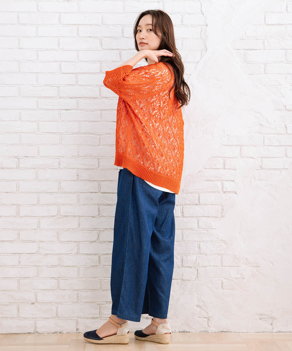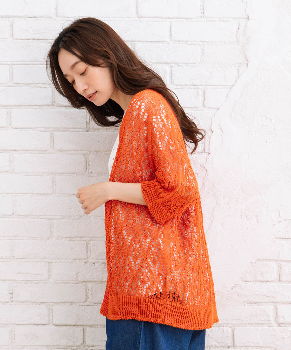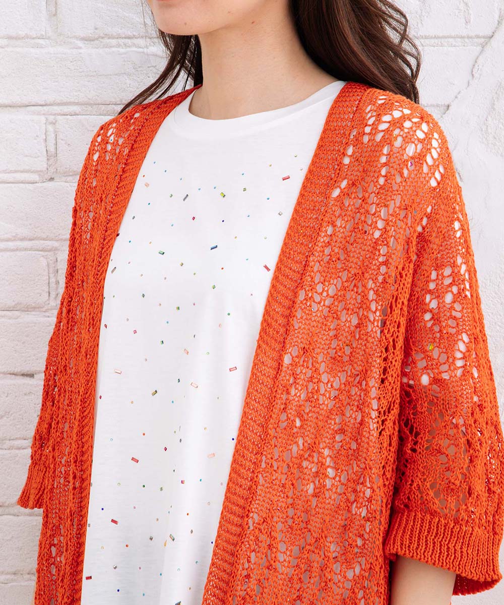 透かし柄編みで魅せる、大人のサマーニットカーディガン。