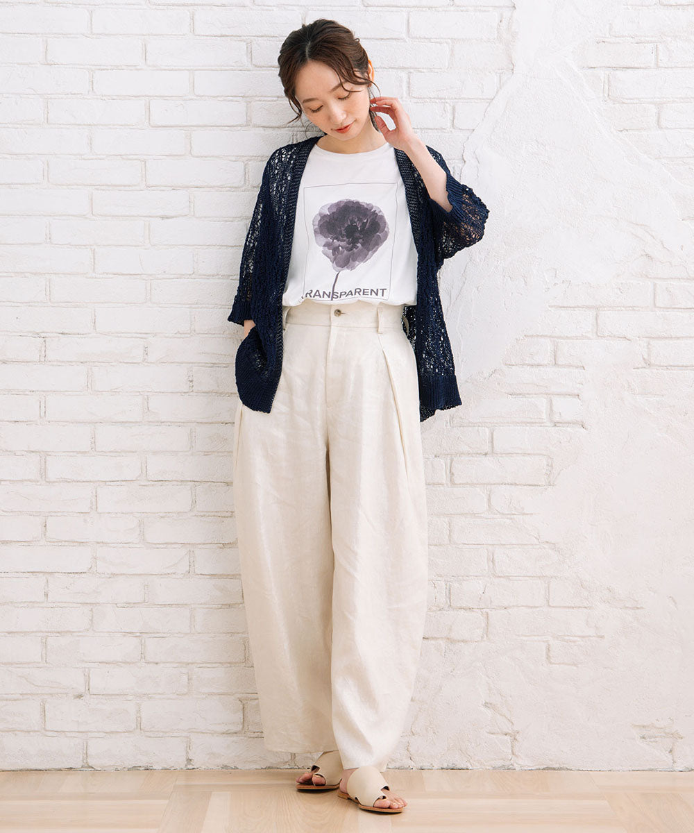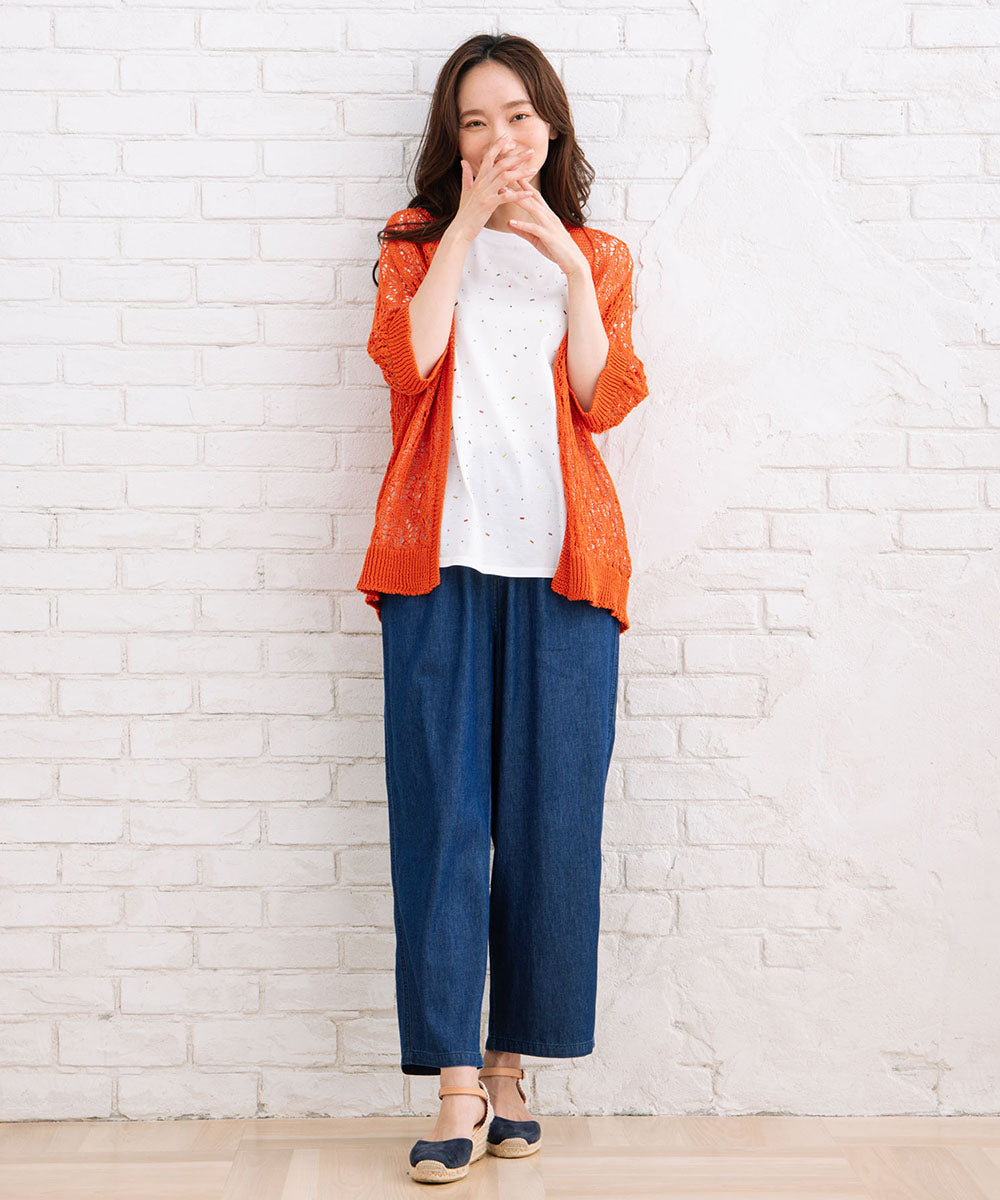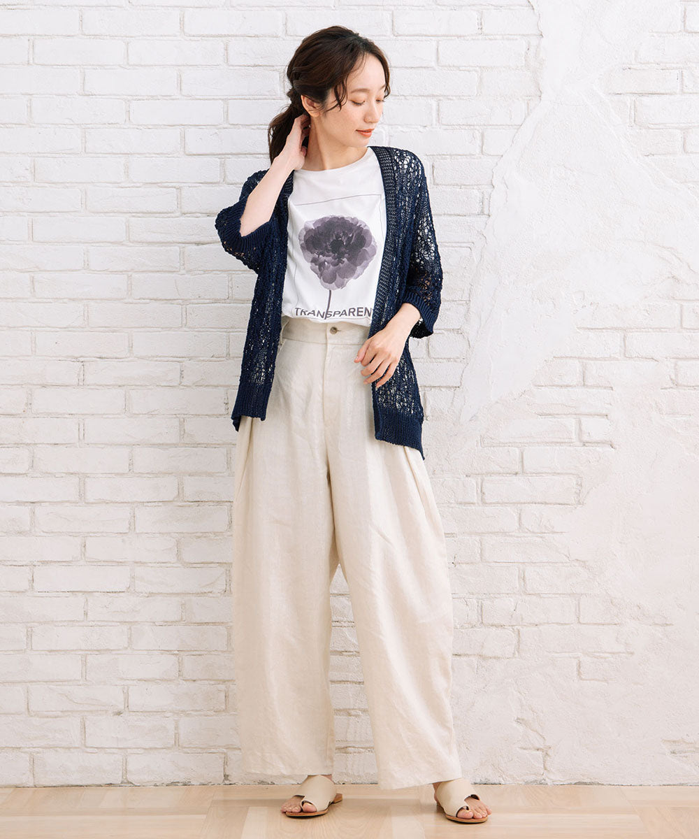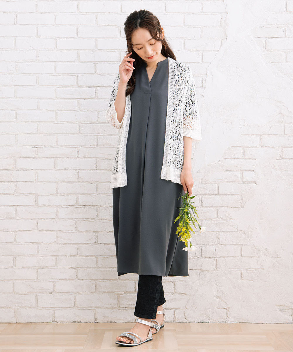 透かし柄編みで魅せる、大人のサマーニットカーディガン。
