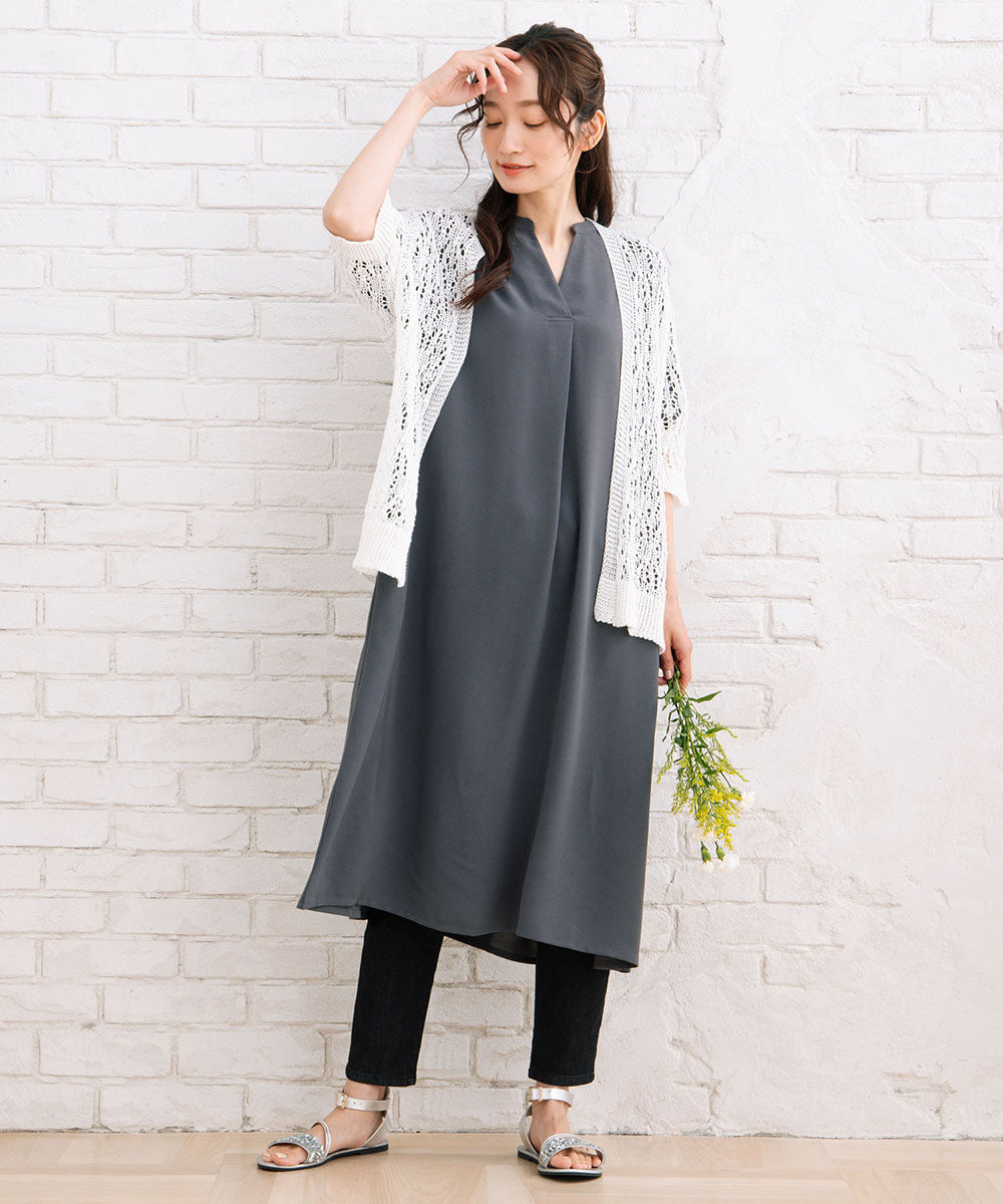 ワンピースやブラウスに羽織るだけで、上品な印象に仕上がります。