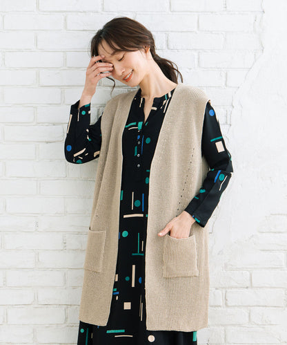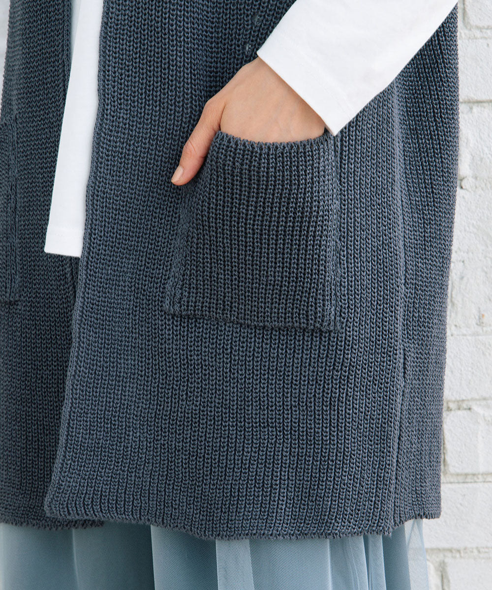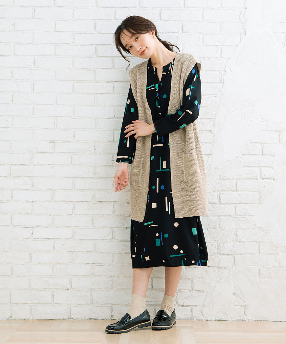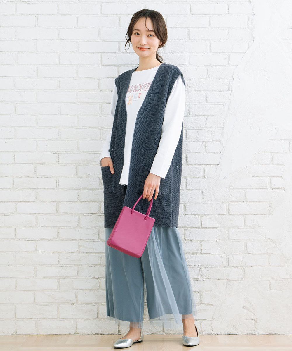 ボディラインをすっきり見せてくれる縦長シルエットで、一枚羽織り縦ラインが入ることでスラっとしたシルエットになりスタイルアップが叶います。