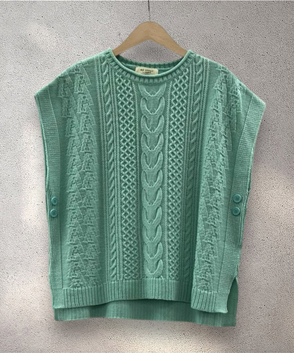 日本製ならではの丁寧な編み地が魅力のケーブル柄ニットベスト。