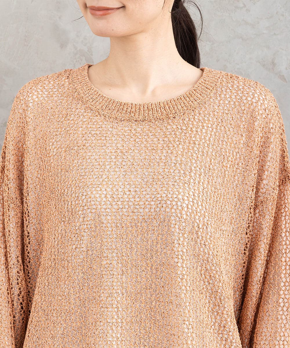 ・メッシュ編み、インナーのオーガンジー切り替え、ゆったりシルエット