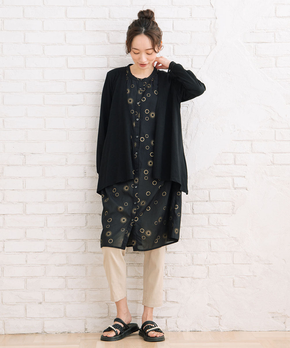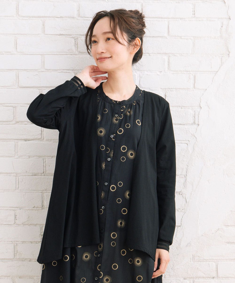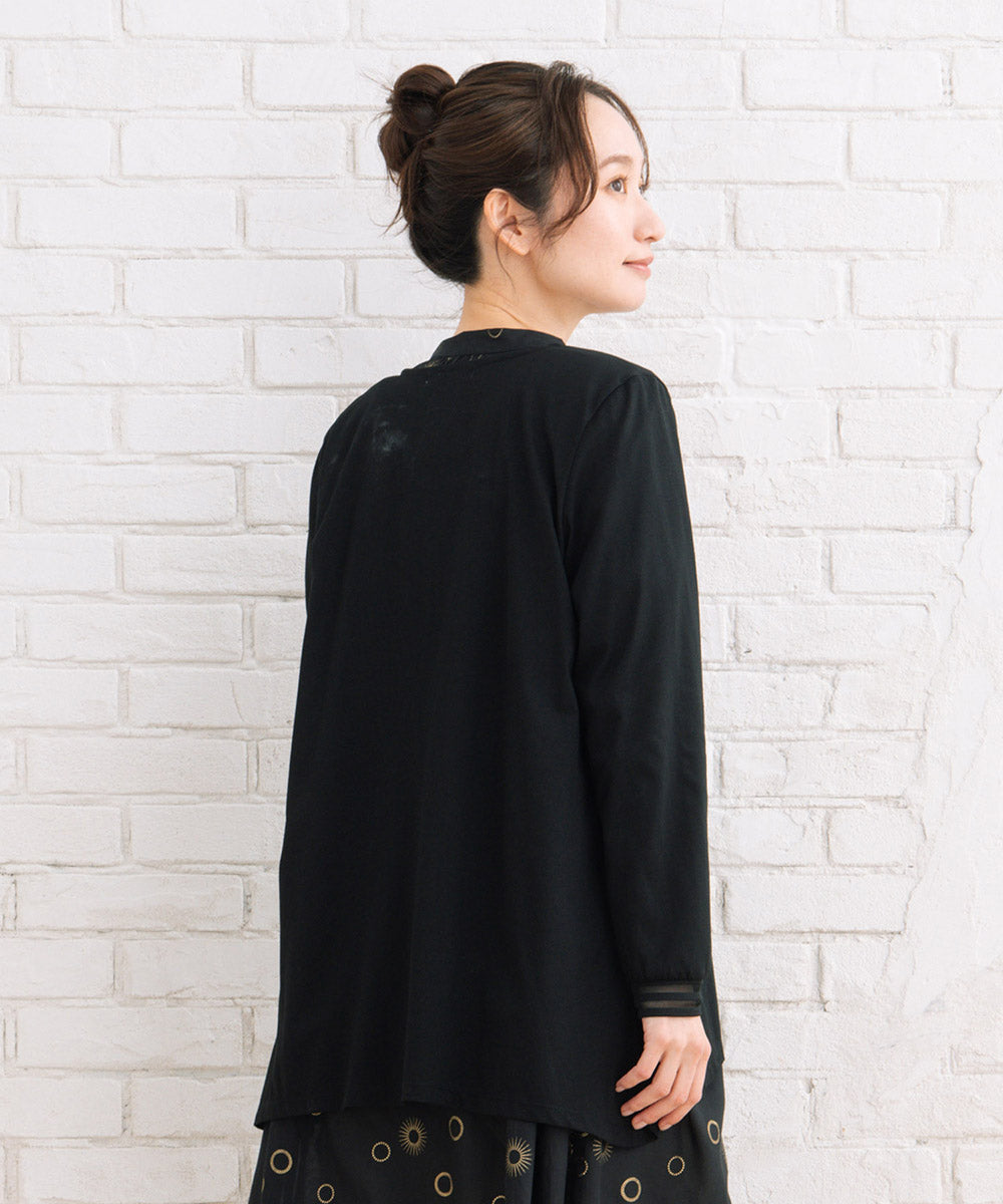 さらりとしたカットソー素材は快適に過ごしやすく、暑い季節には冷房対策や紫外線対策にもオススメです。