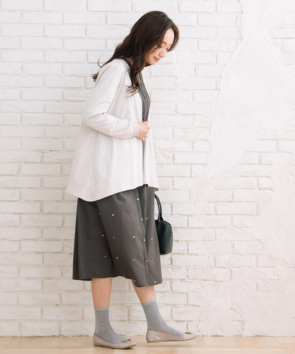さらりとしたカットソー素材は快適に過ごしやすく、暑い季節には冷房対策や紫外線対策にもオススメです。