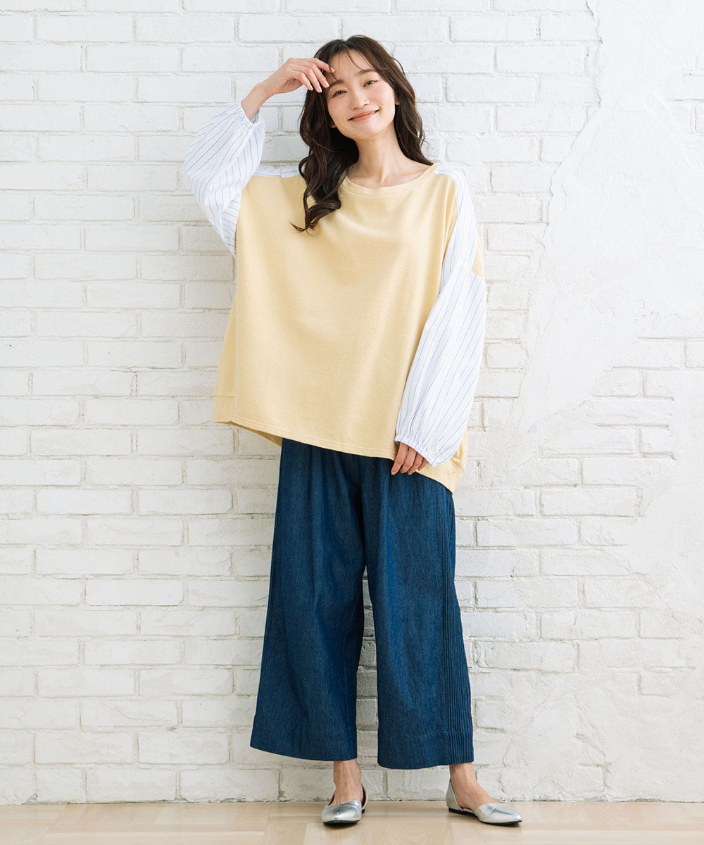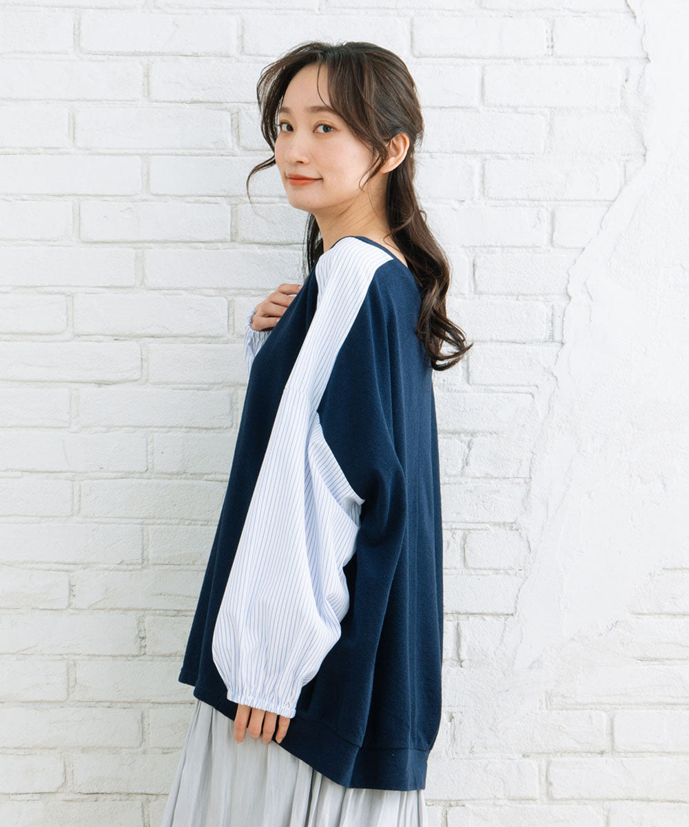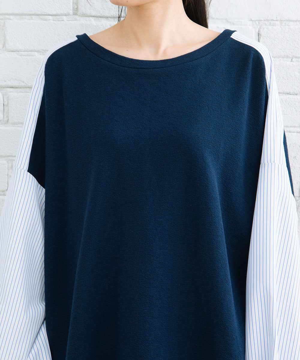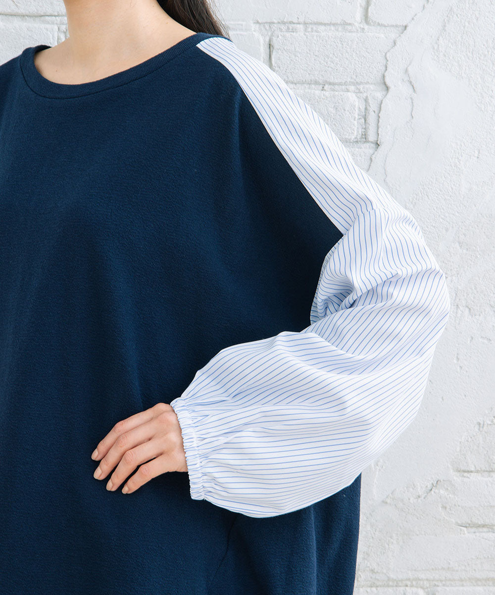 袖のストライプ切り替えがポイントのおしゃれカットソー。