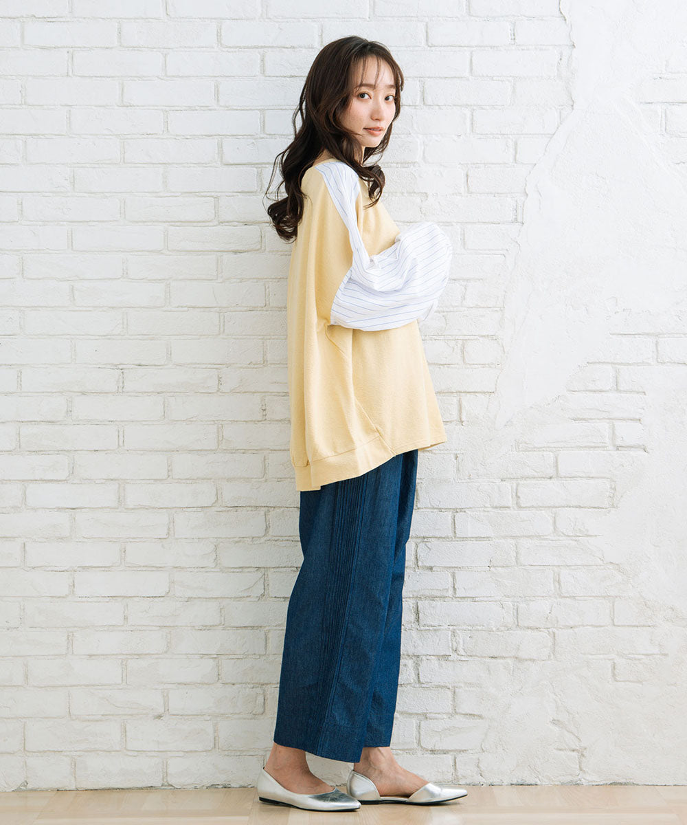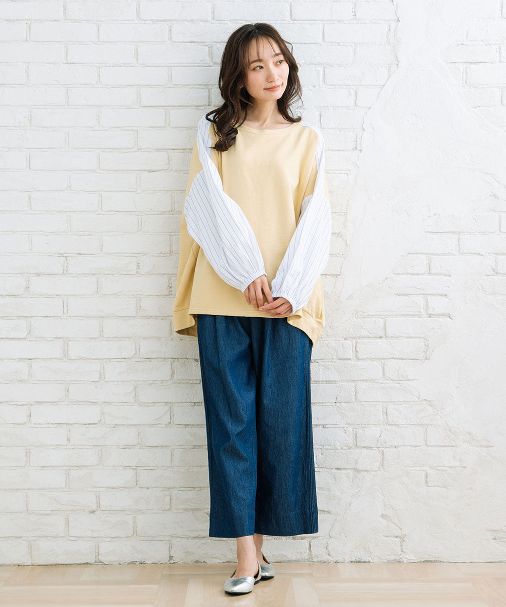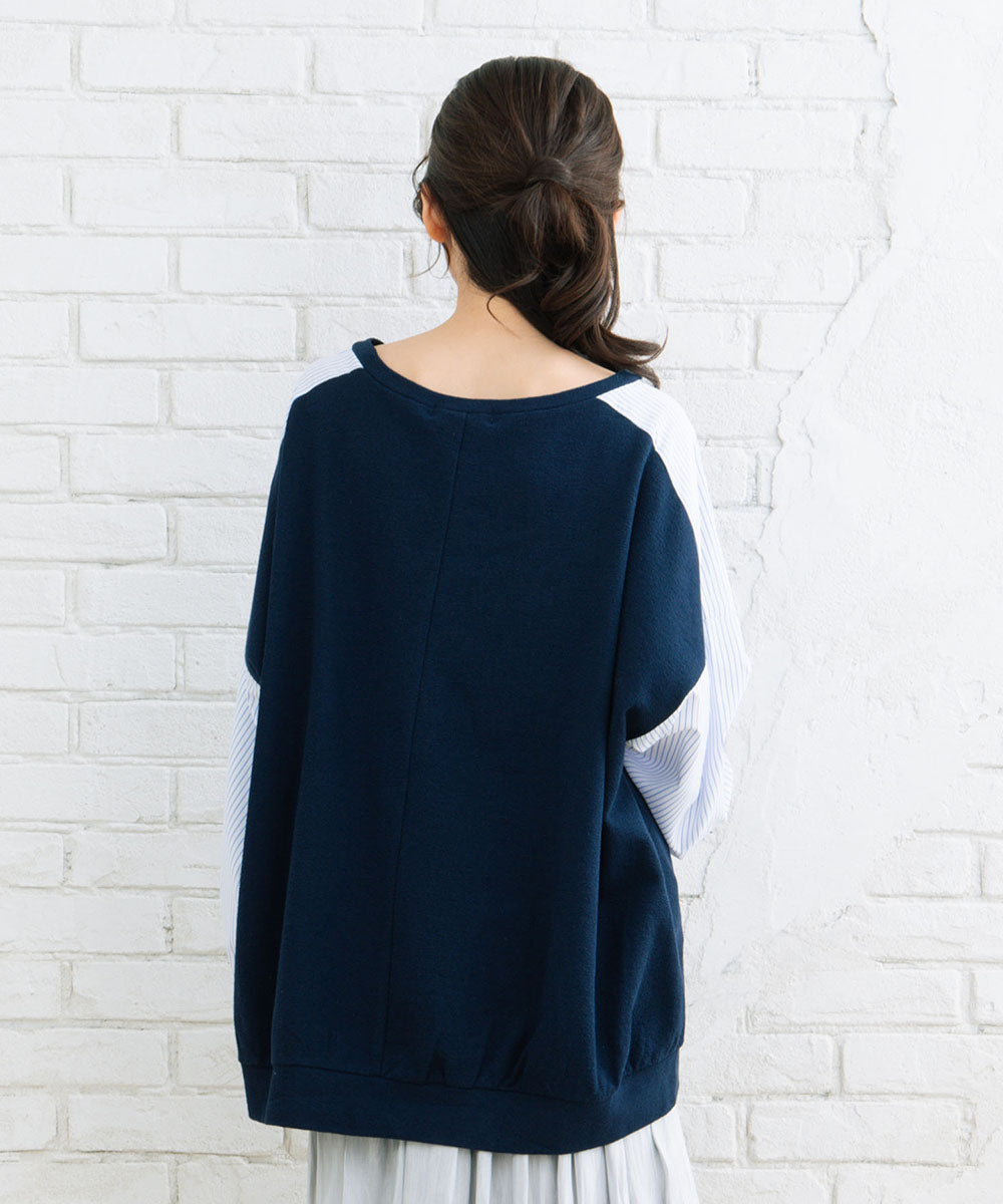 袖のストライプ切り替えがポイントのおしゃれカットソー。