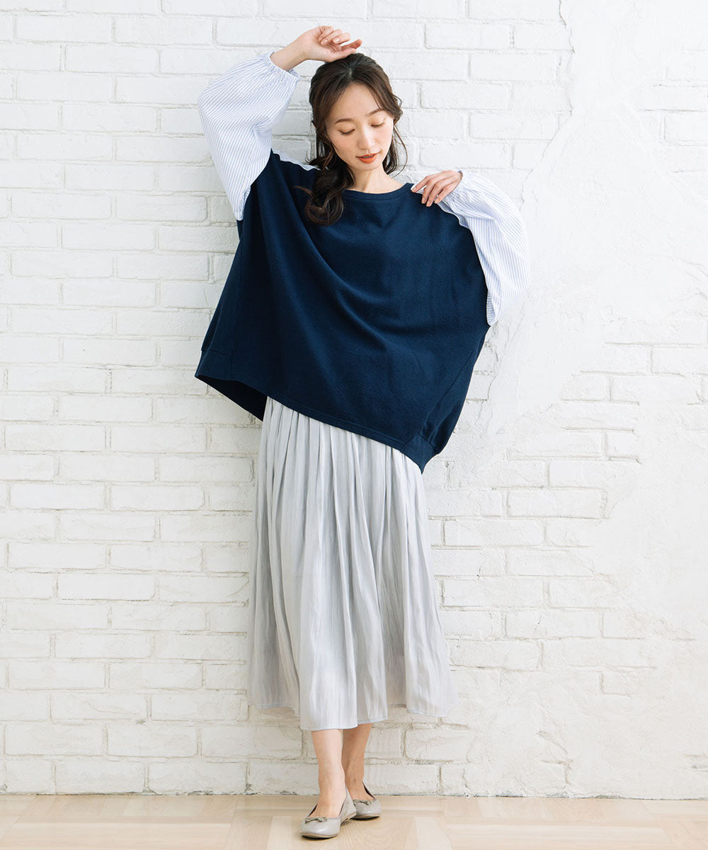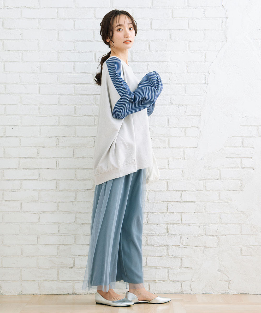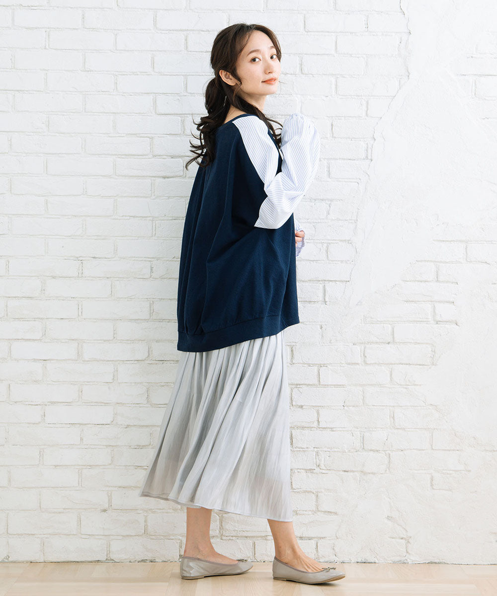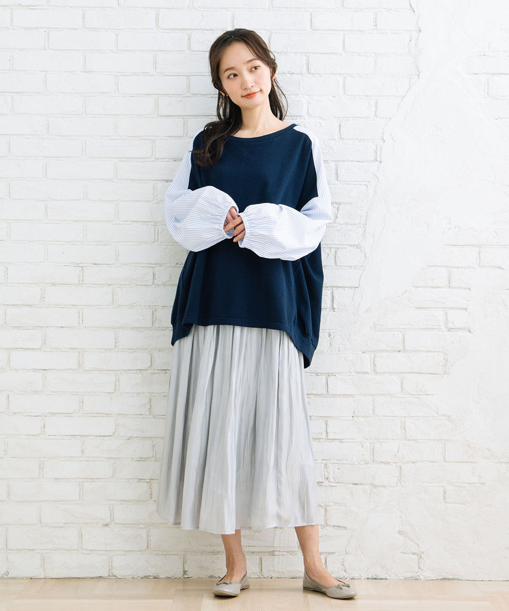 袖のストライプ切り替えがポイントのおしゃれカットソー。