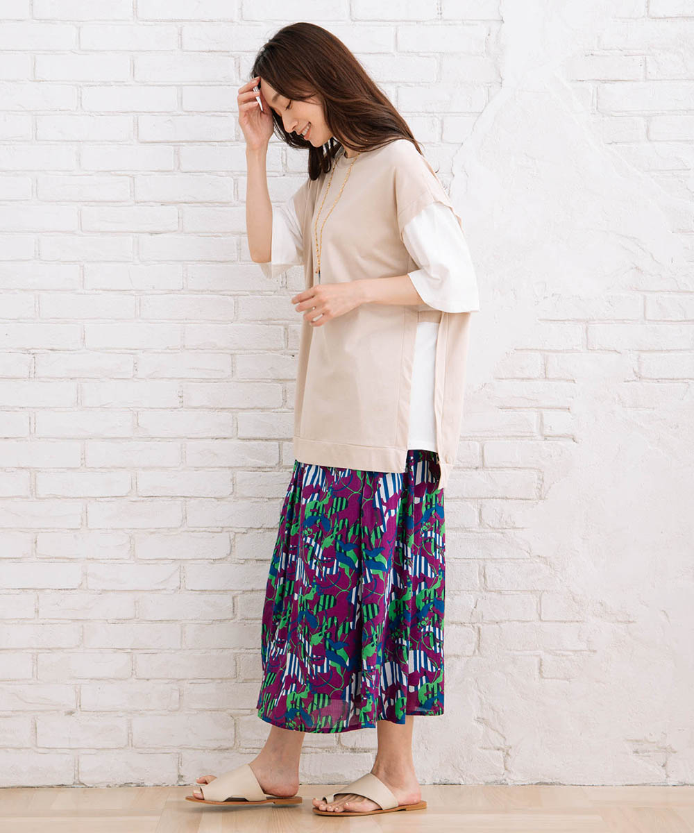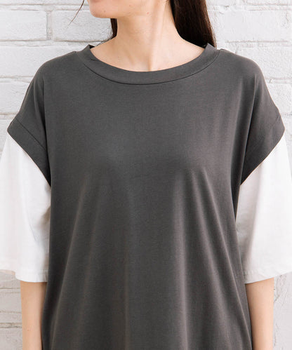 一枚でレイヤードスタイルが完成、こなれ感のあるフェイクアンサンブルカットソー。