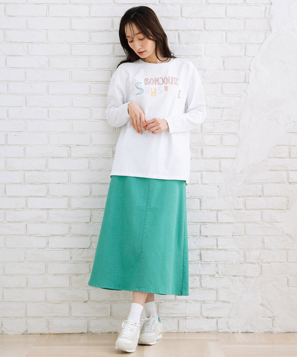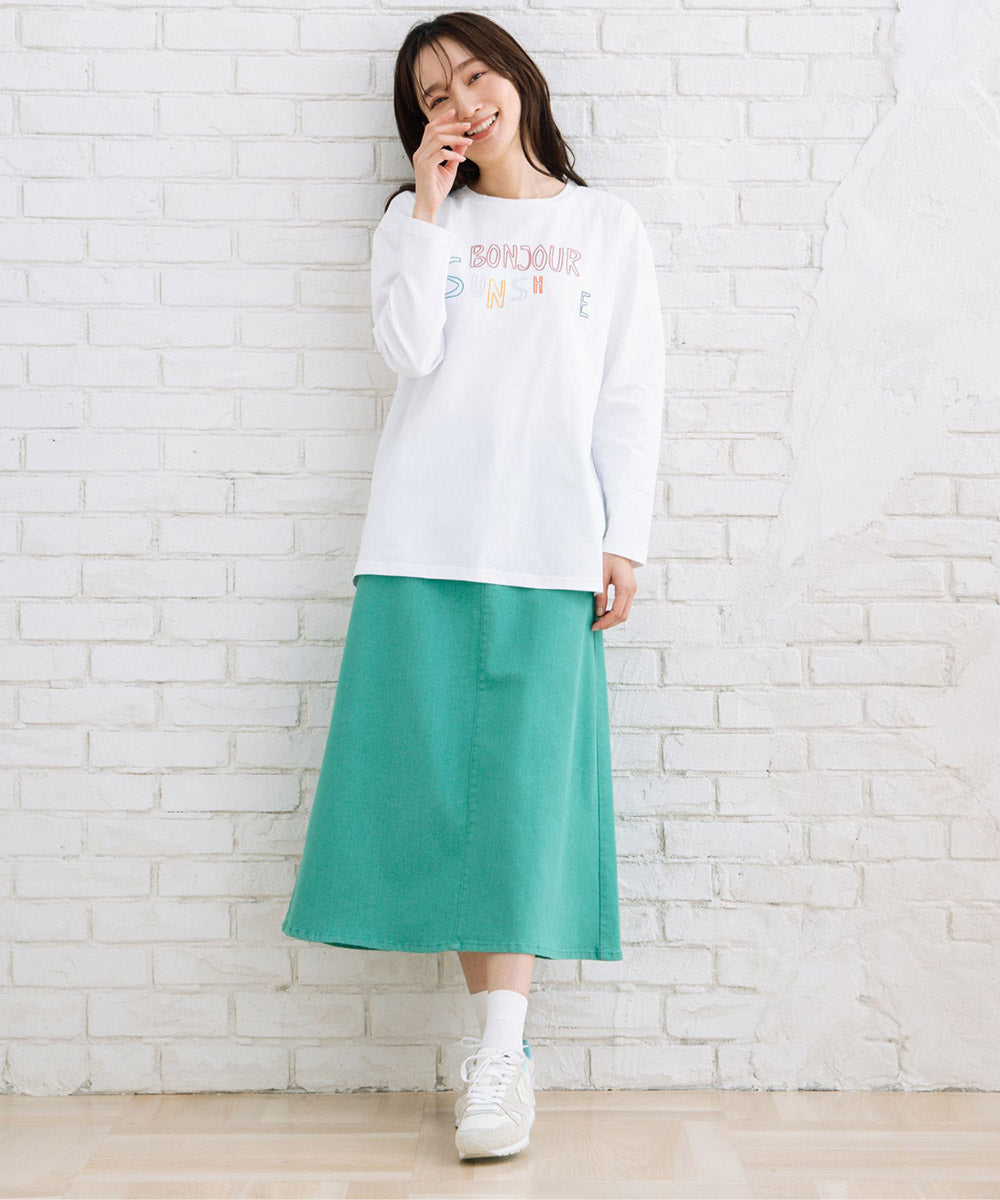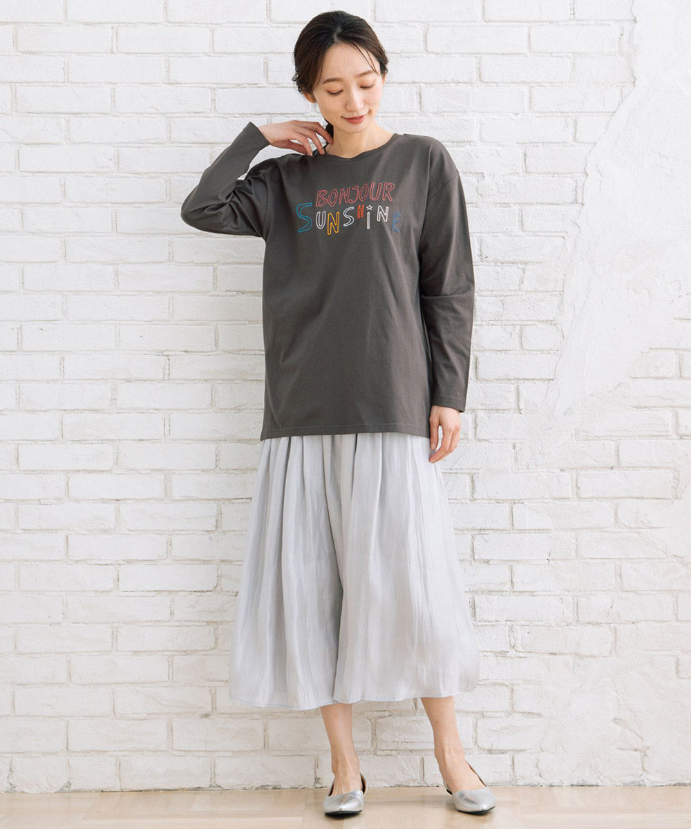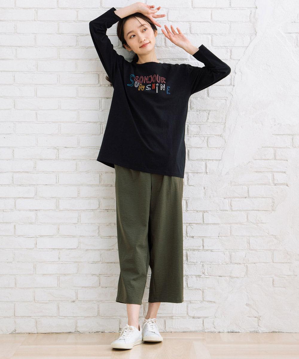 「BONJOUR SUNSHINE」のロゴ刺繍がかわいいロングTシャツ。