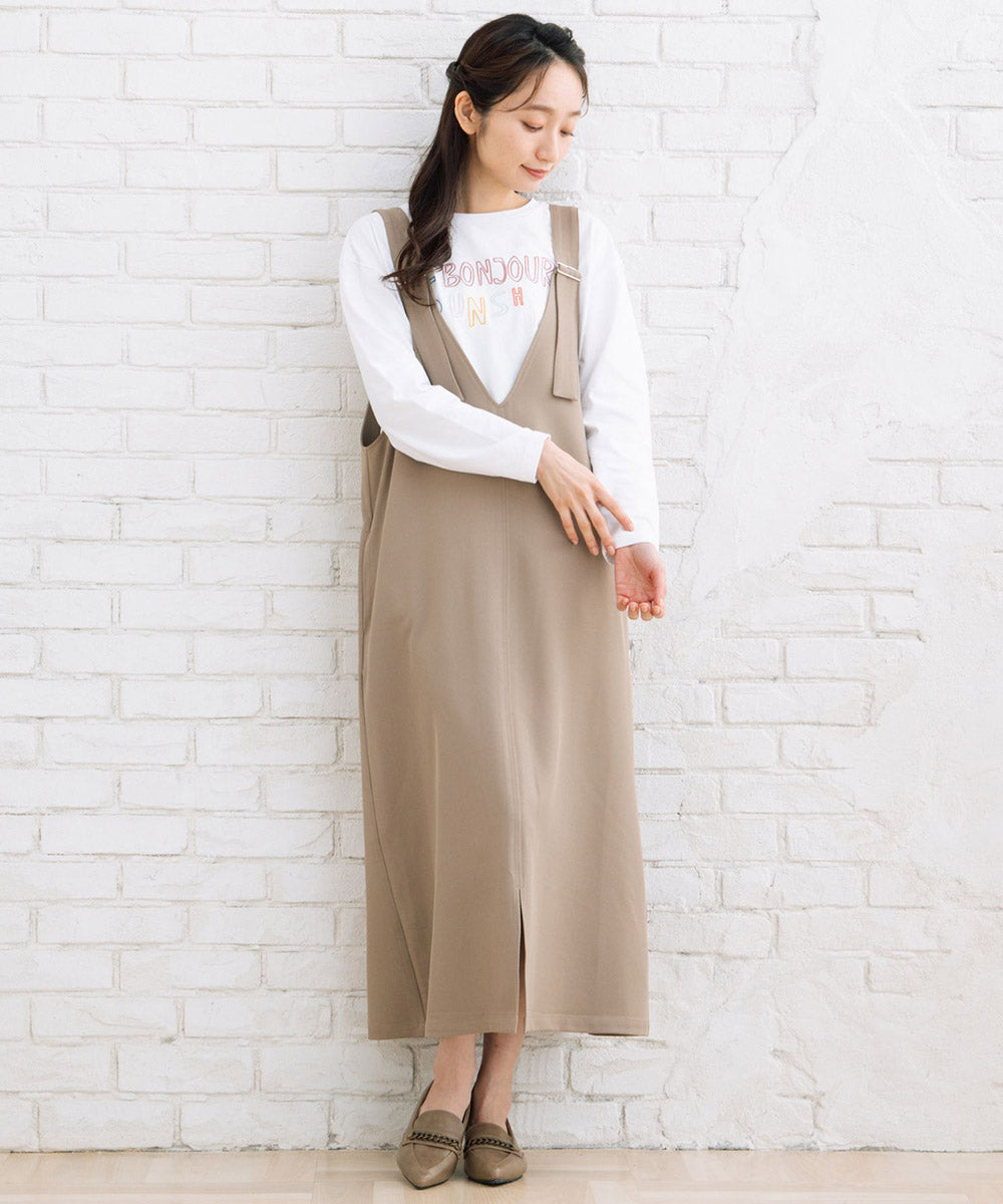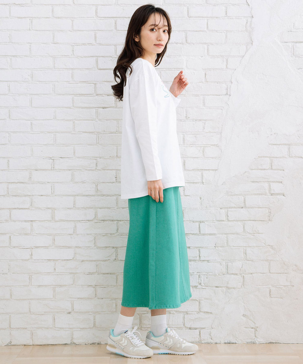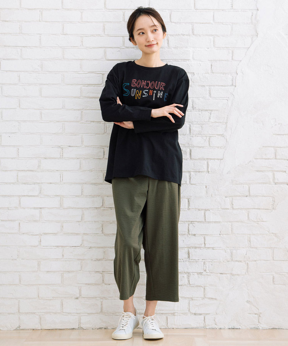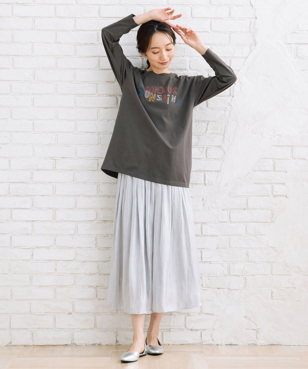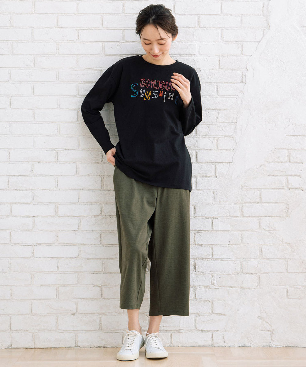 「BONJOUR SUNSHINE」のロゴ刺繍がかわいいロングTシャツ。