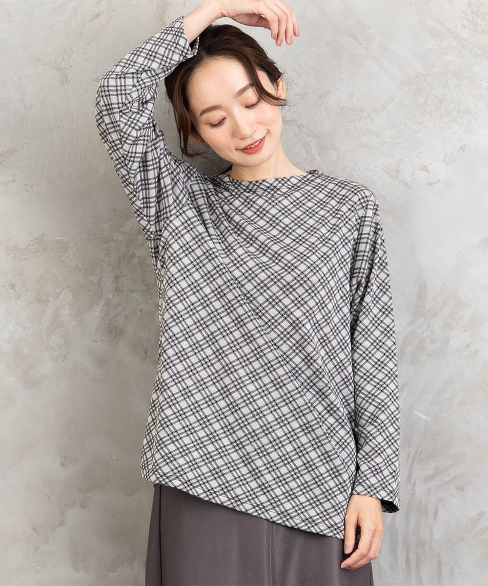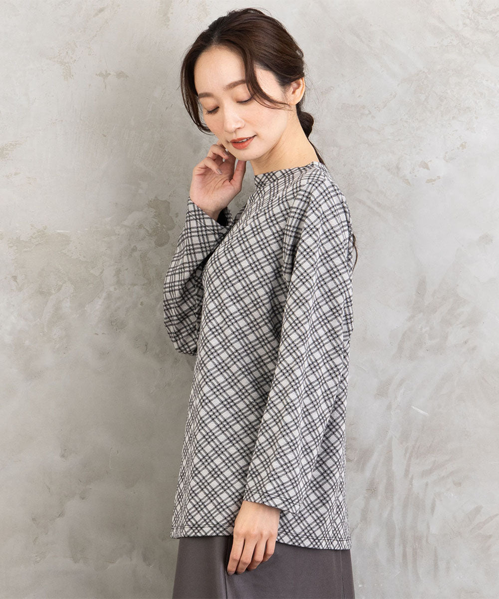 【洒落感漂う、バイアスチェックモックネックインナー】