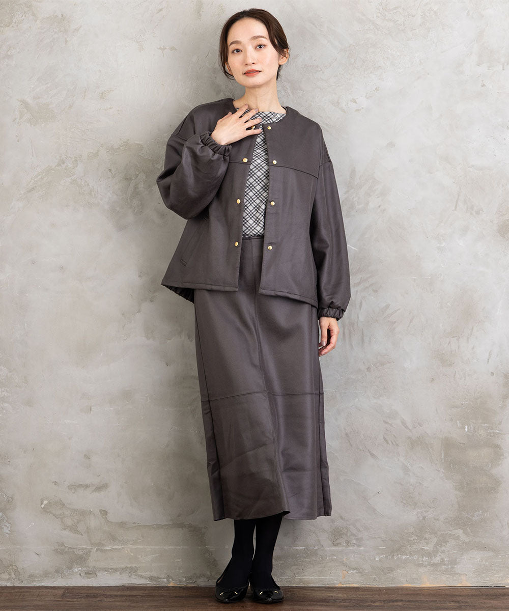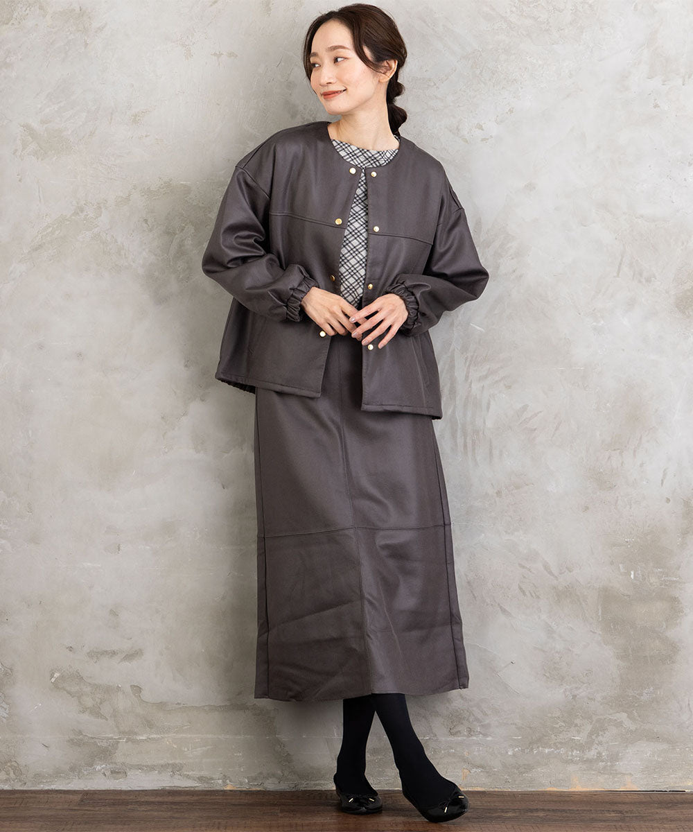 首元をすっきり見せるモックネックデザインで、大人らしい上品な印象に。