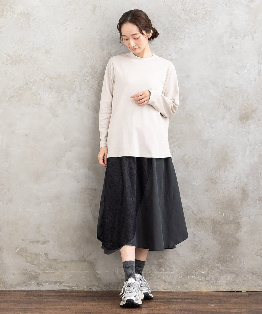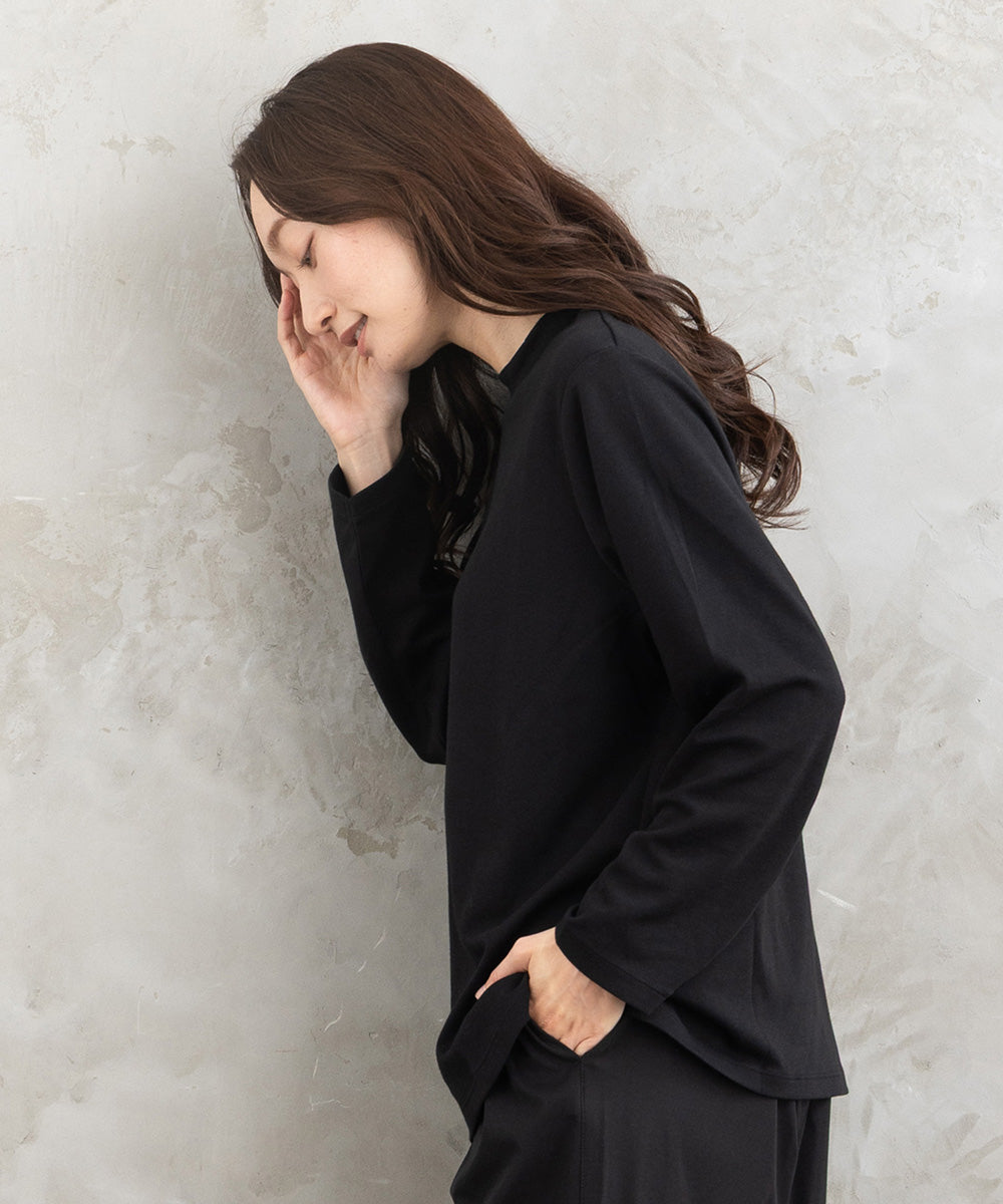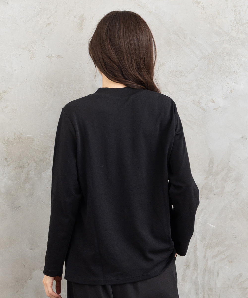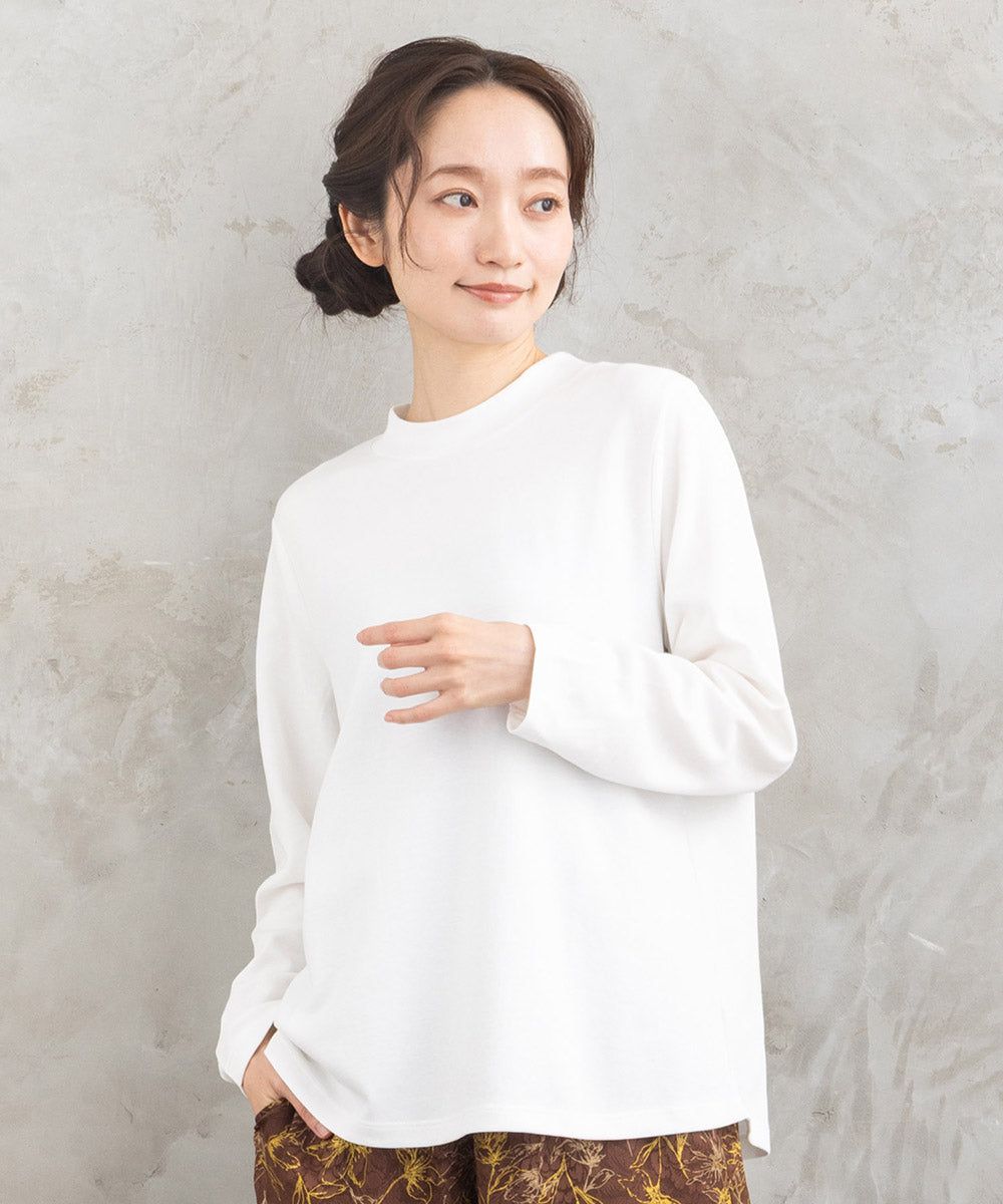 程よいハリ感がシルエットをきれいに保ち、一枚でもインナーでも着こなせます。