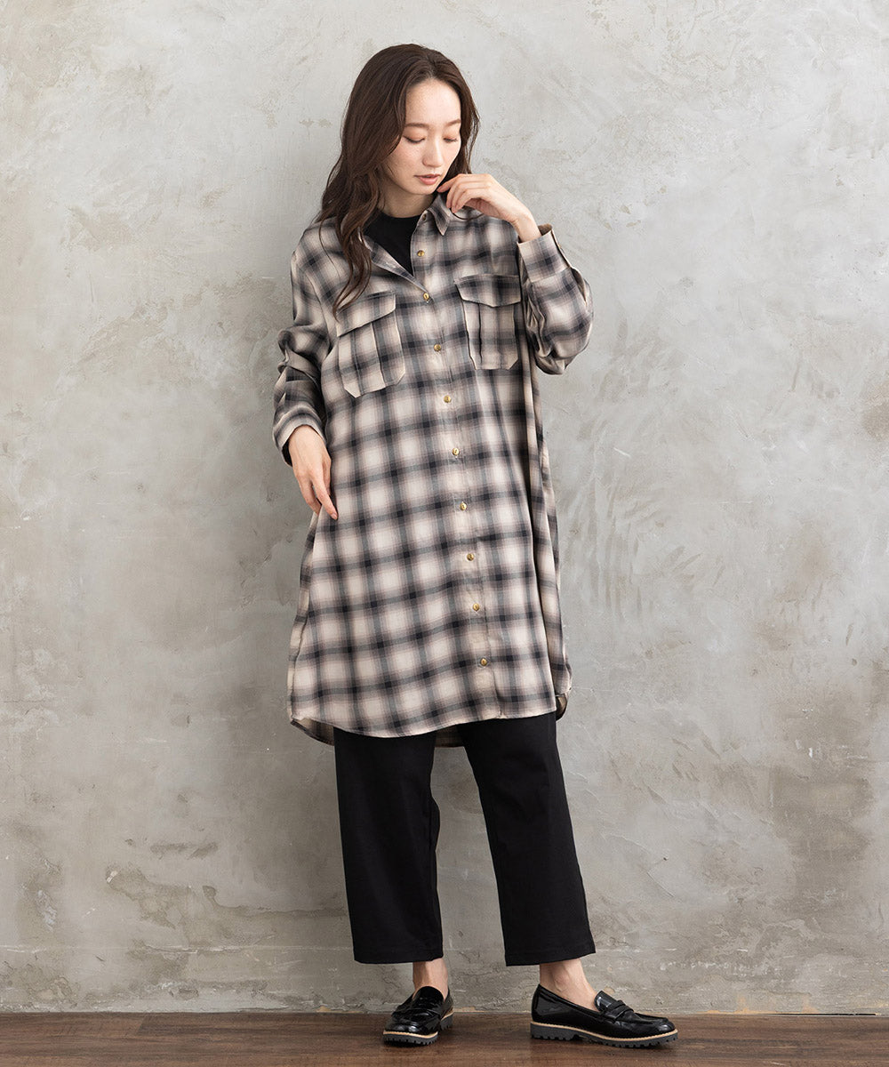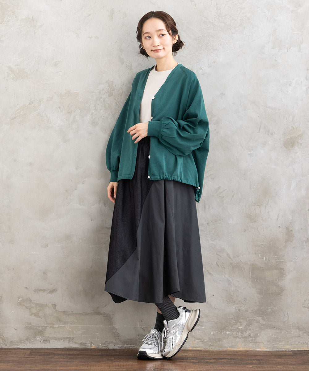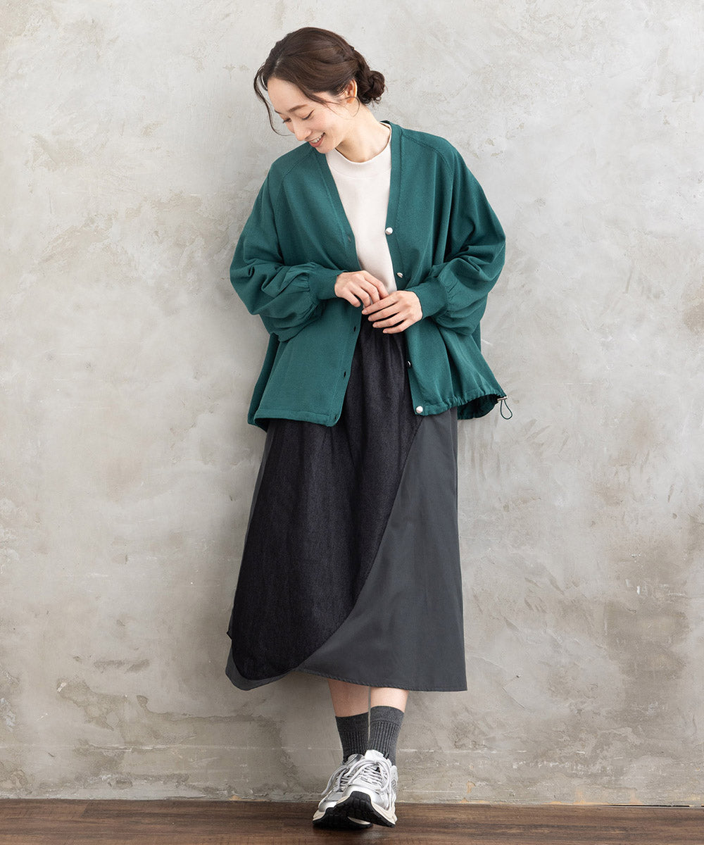 ジャケットやカーディガンの下に合わせれば、すっきりとしたレイヤードが完成します。