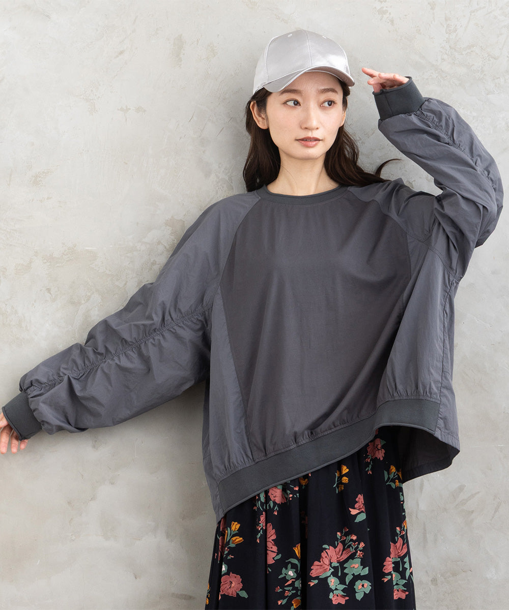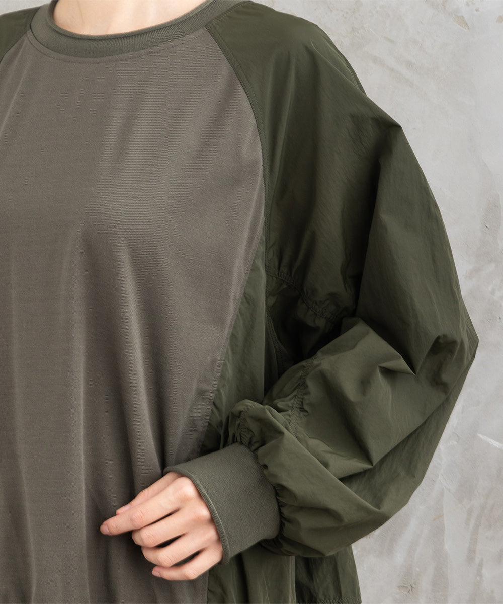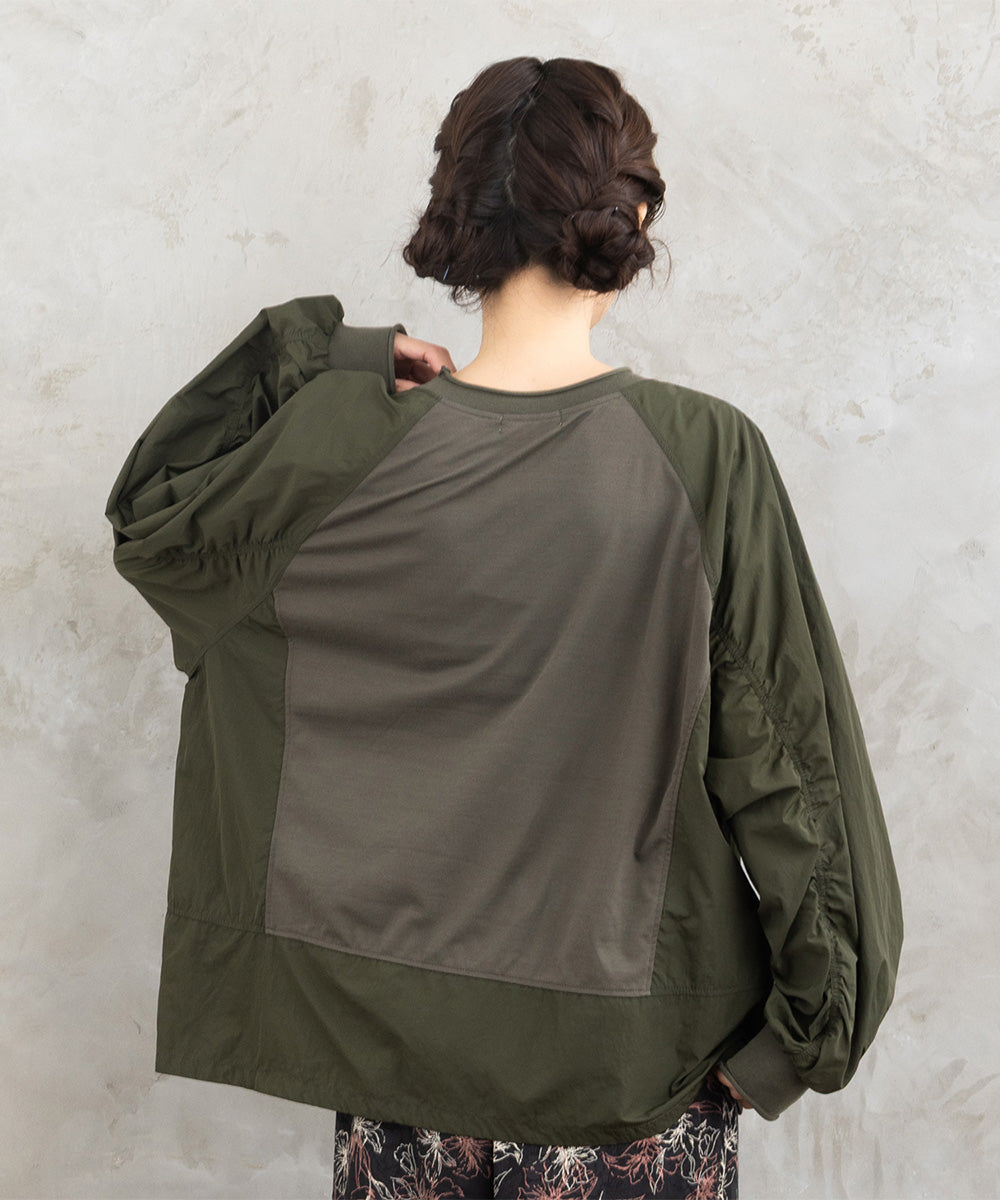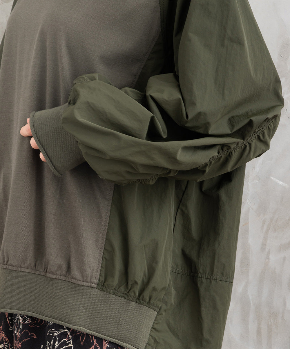 【異素材で魅せる、ナイロンタフタコンビプルオーバー】