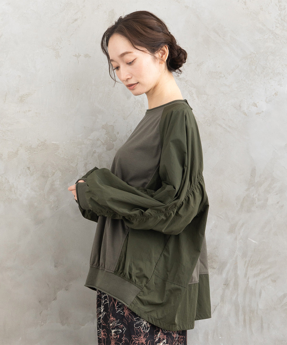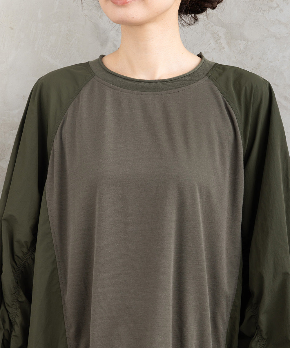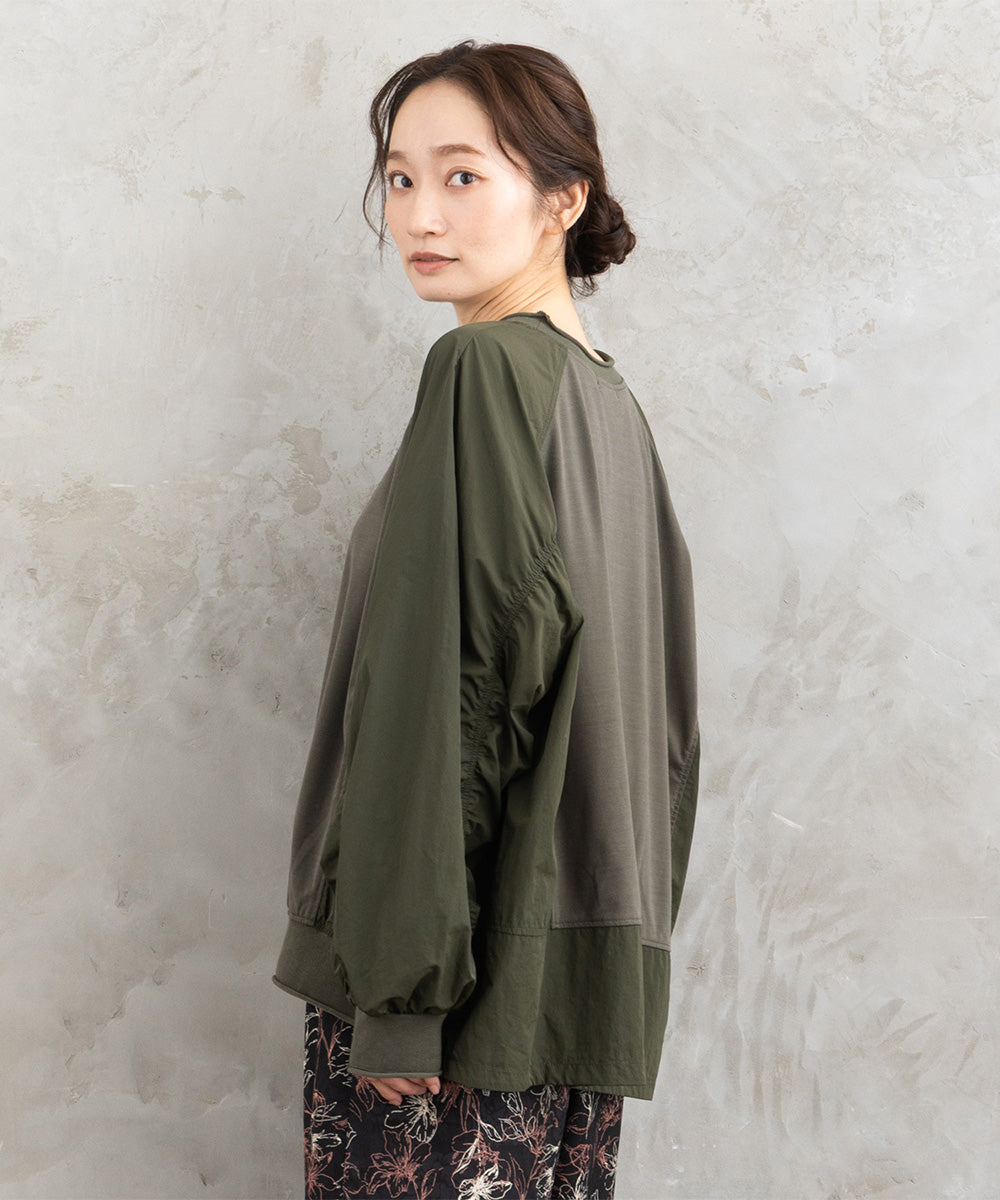 【異素材で魅せる、ナイロンタフタコンビプルオーバー】