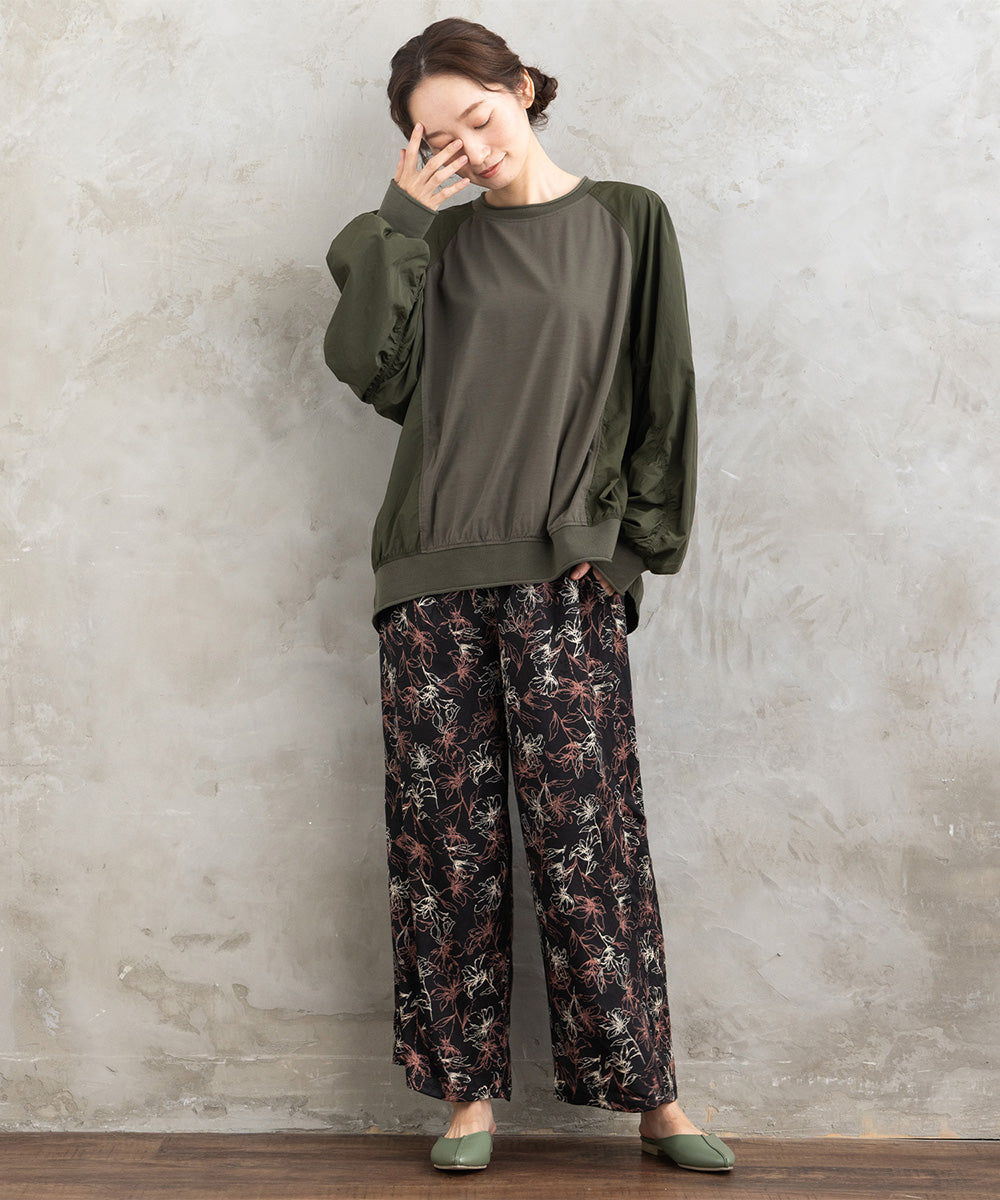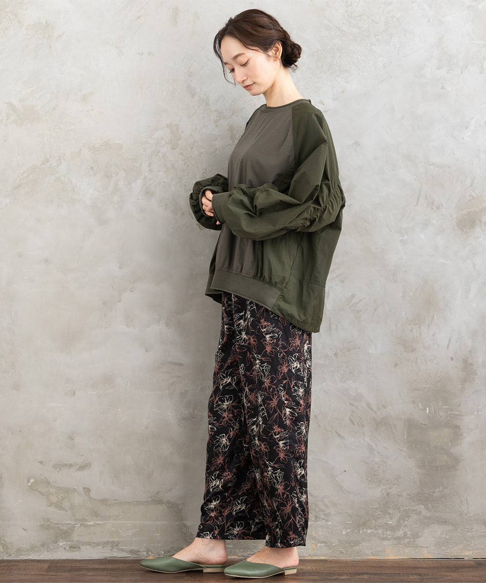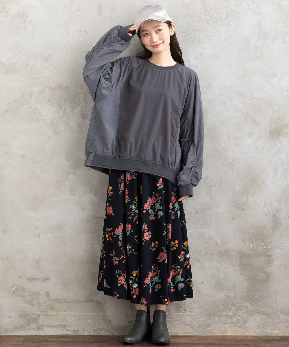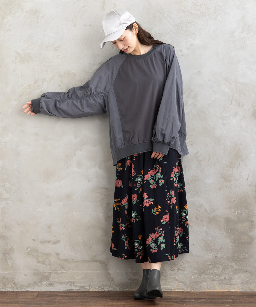 【異素材で魅せる、ナイロンタフタコンビプルオーバー】