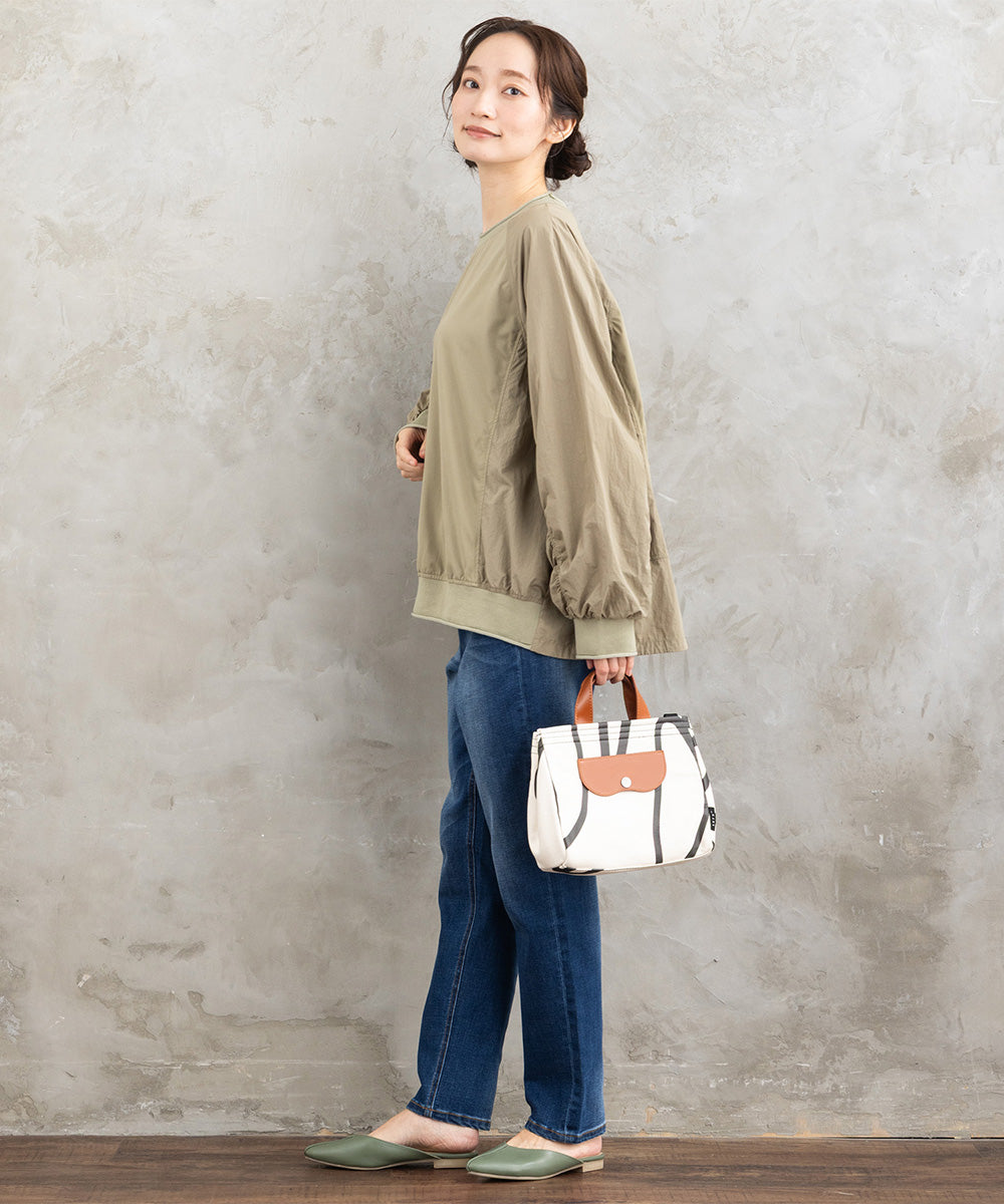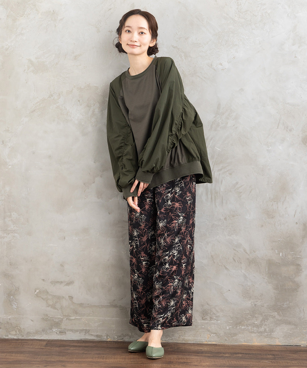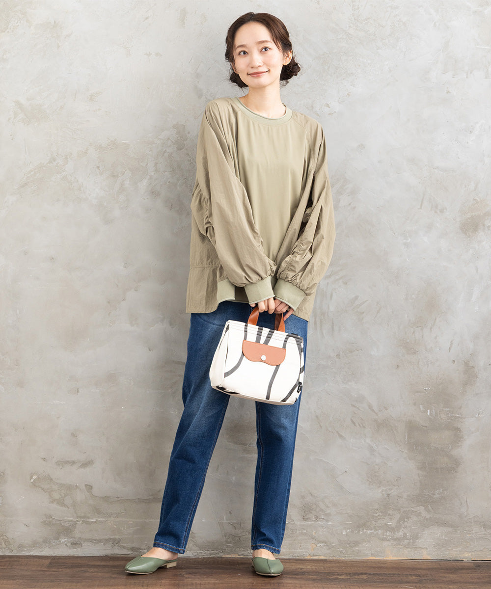 マットなカットソー素材とハリのあるナイロンタフタを組み合わせた、大人カジュアルな一枚。