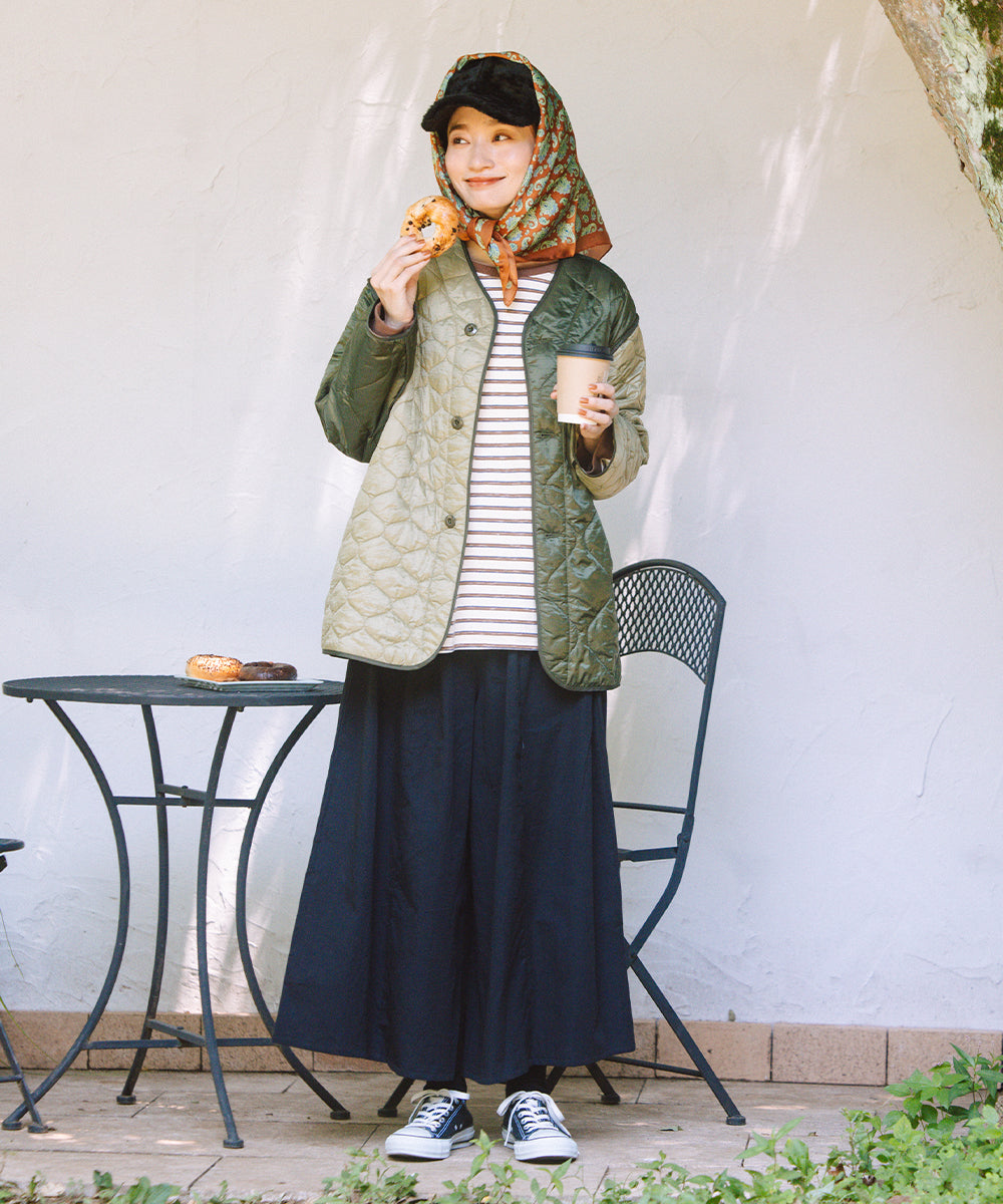 足元はスニーカーやフラットシューズで軽やかに仕上げるのがおすすめです。