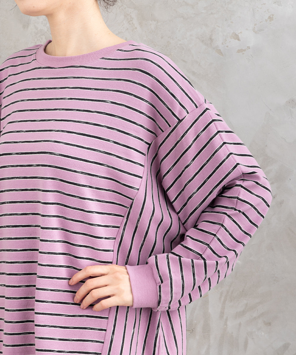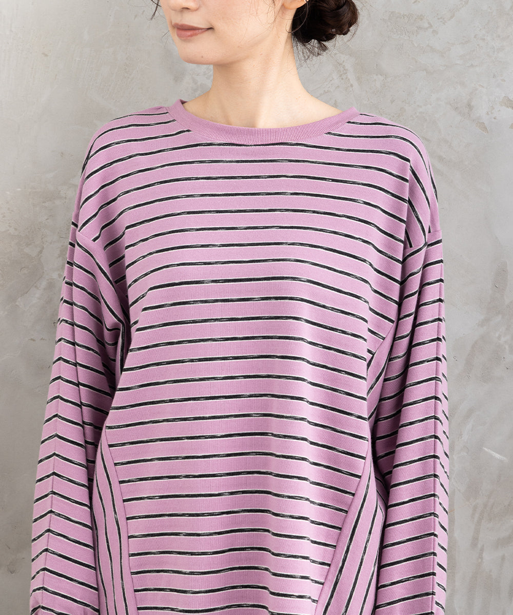 ・デザインポイント:配色ボーダー/ゆったりシルエット/サイド切り替え