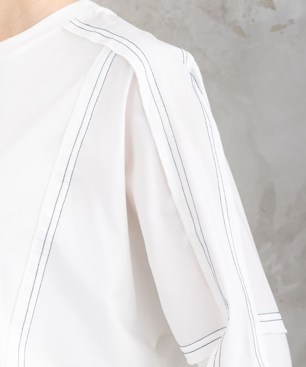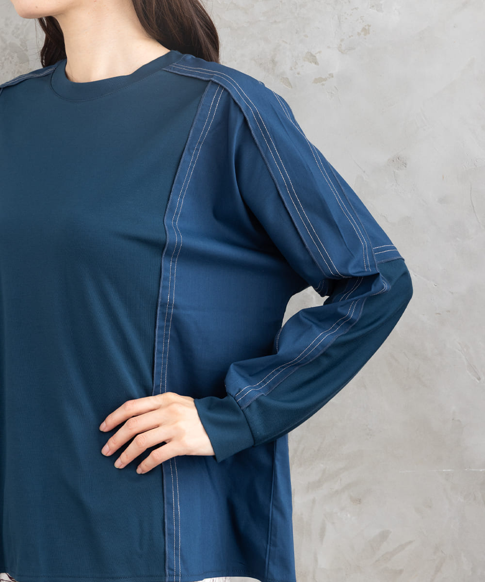 ・デザインポイント:配色ステッチ/ドロップショルダー/リラックス感のある身幅