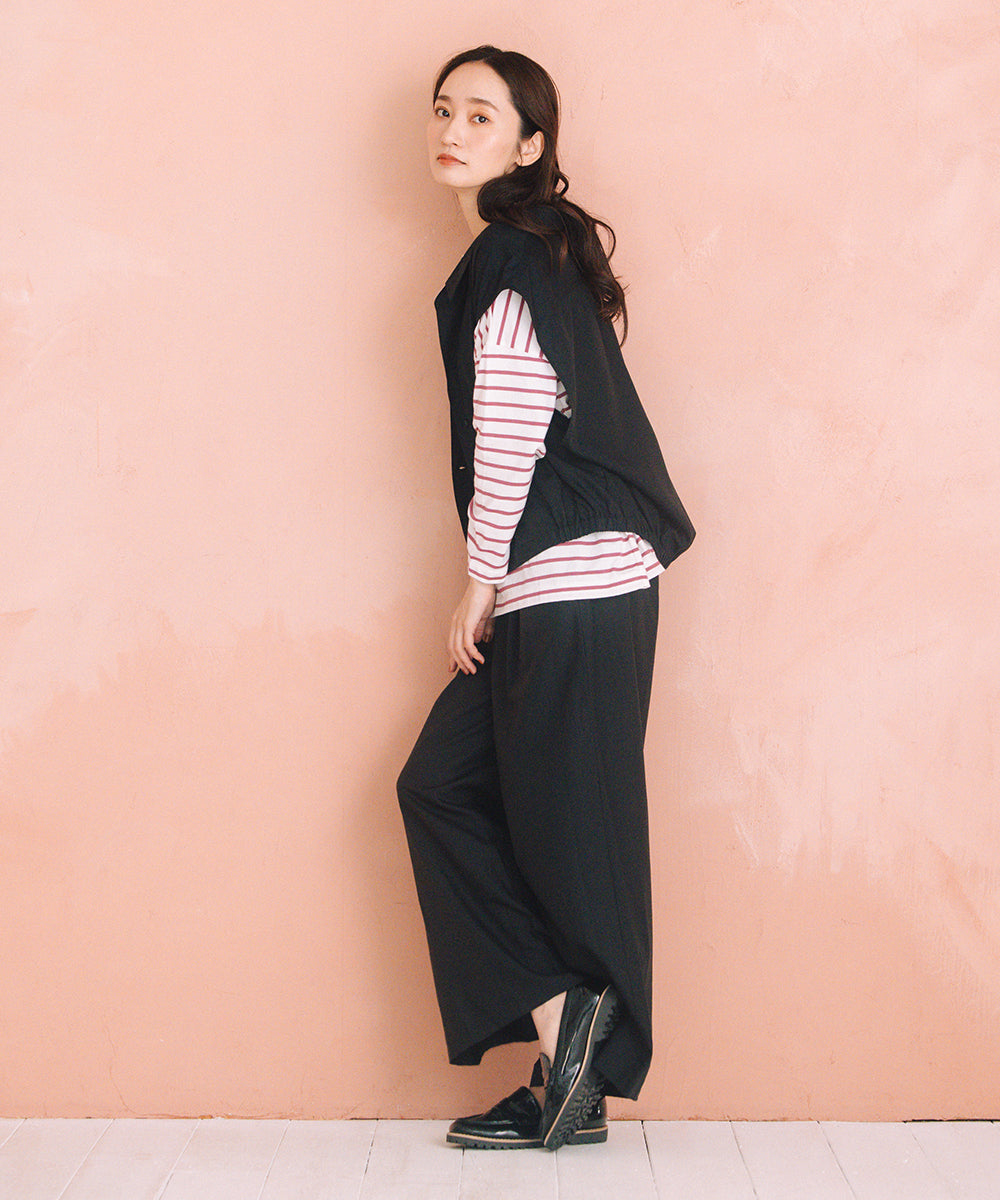 無地のワイドパンツやデニムと合わせて、トップスを主役に。