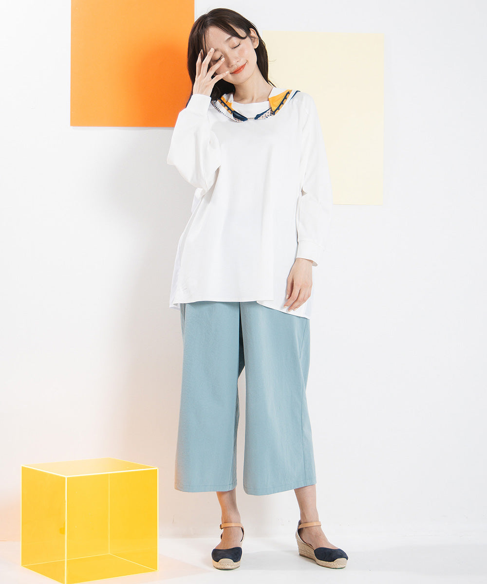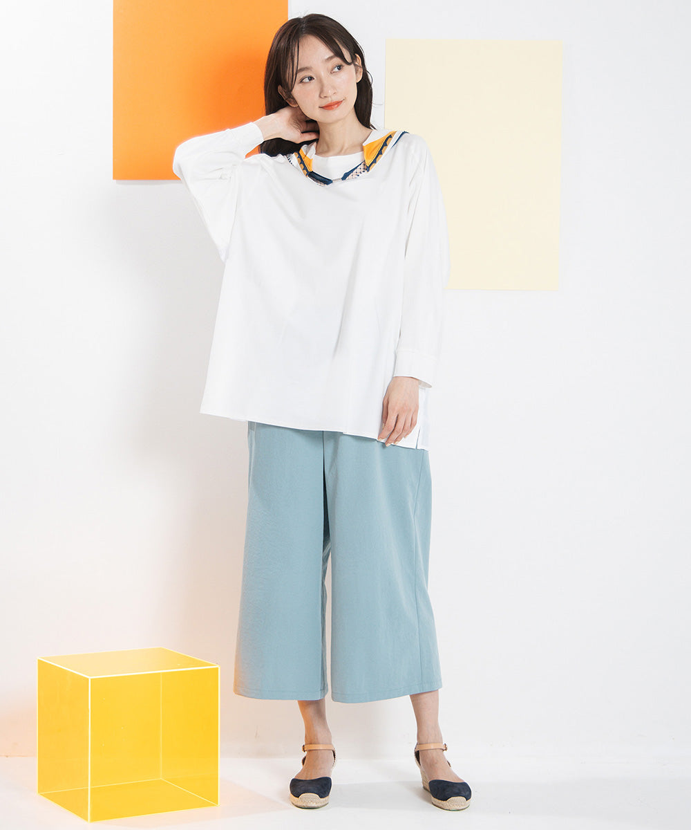シンプルなボトムを合わせることで、トップスのデザインがより引き立ちます。