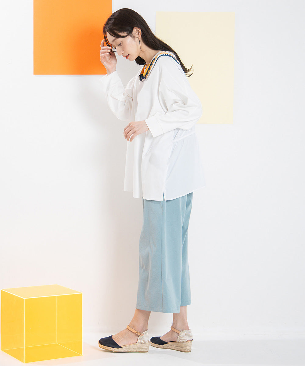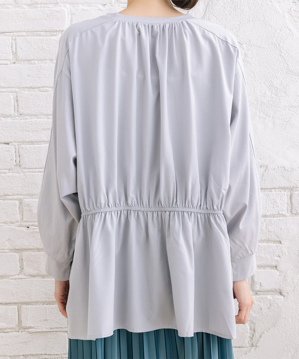 【異素材の表情が引き立つ、シルケットポンチ×布帛ギャザーコンビプルオーバー】