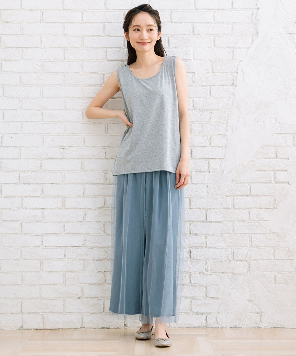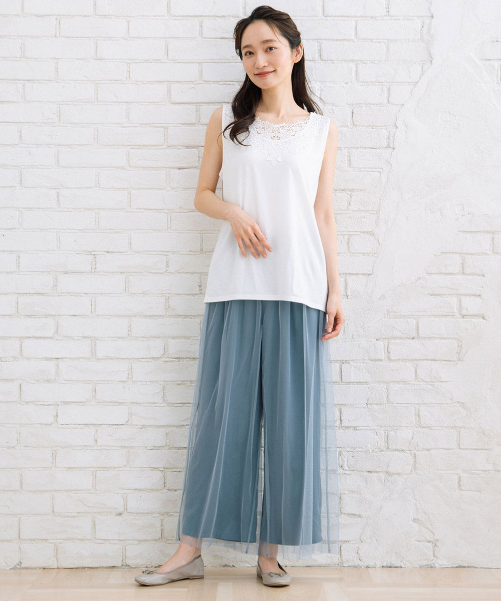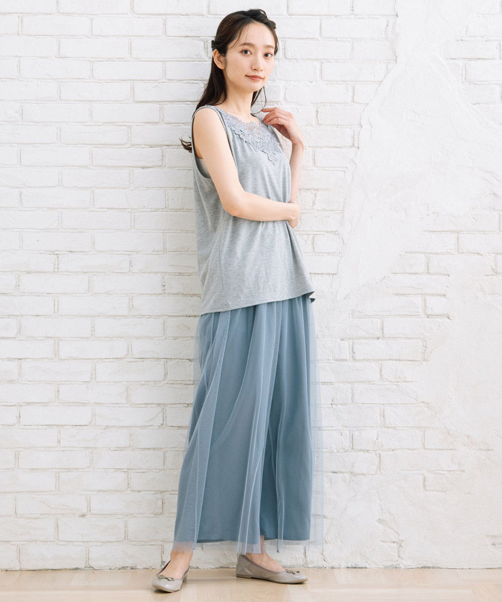 レース面と無地面の前後2wayで着られるので、合わせるアイテムによって使い分けられます。