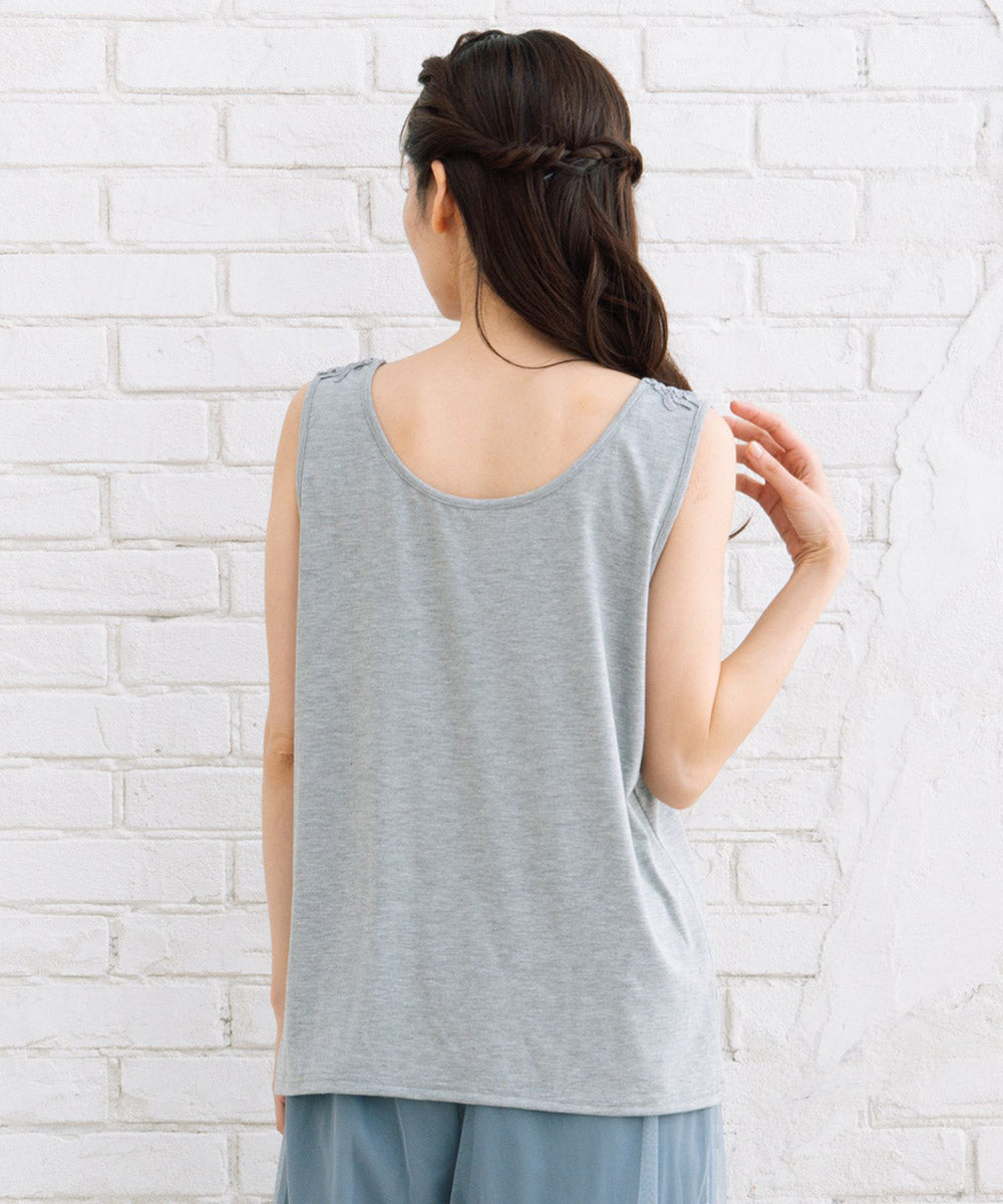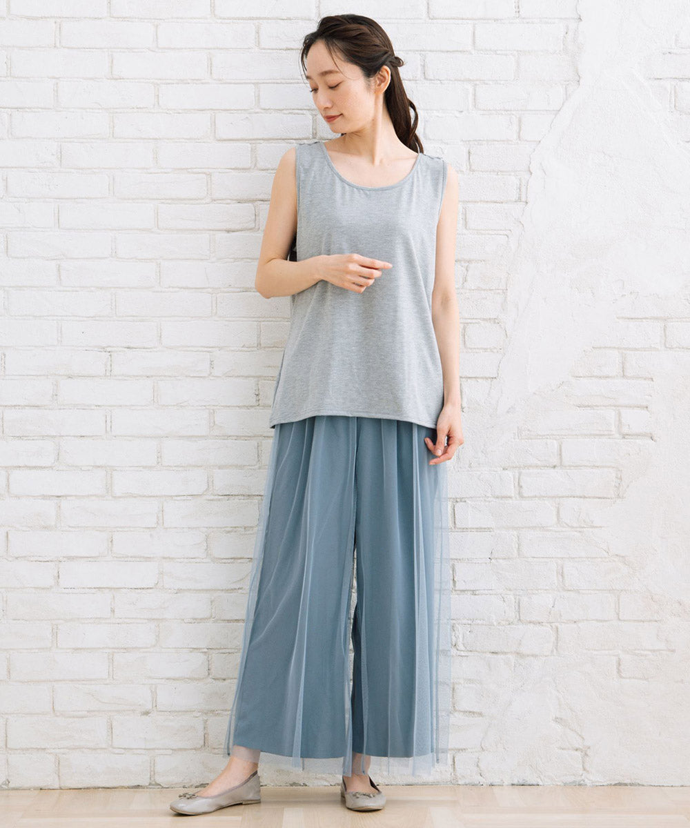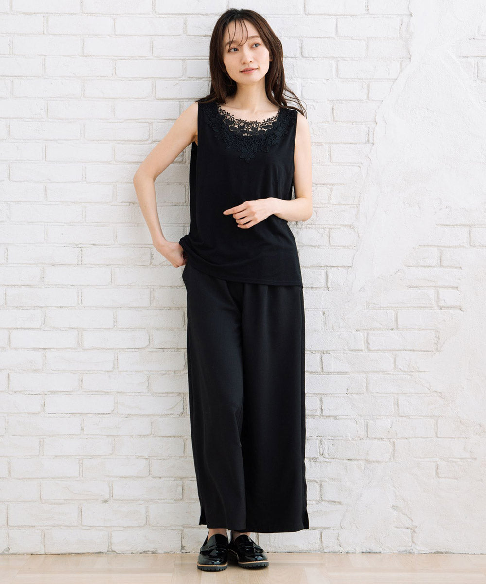 レース面と無地面の前後2wayで着られるので、合わせるアイテムによって使い分けられます。