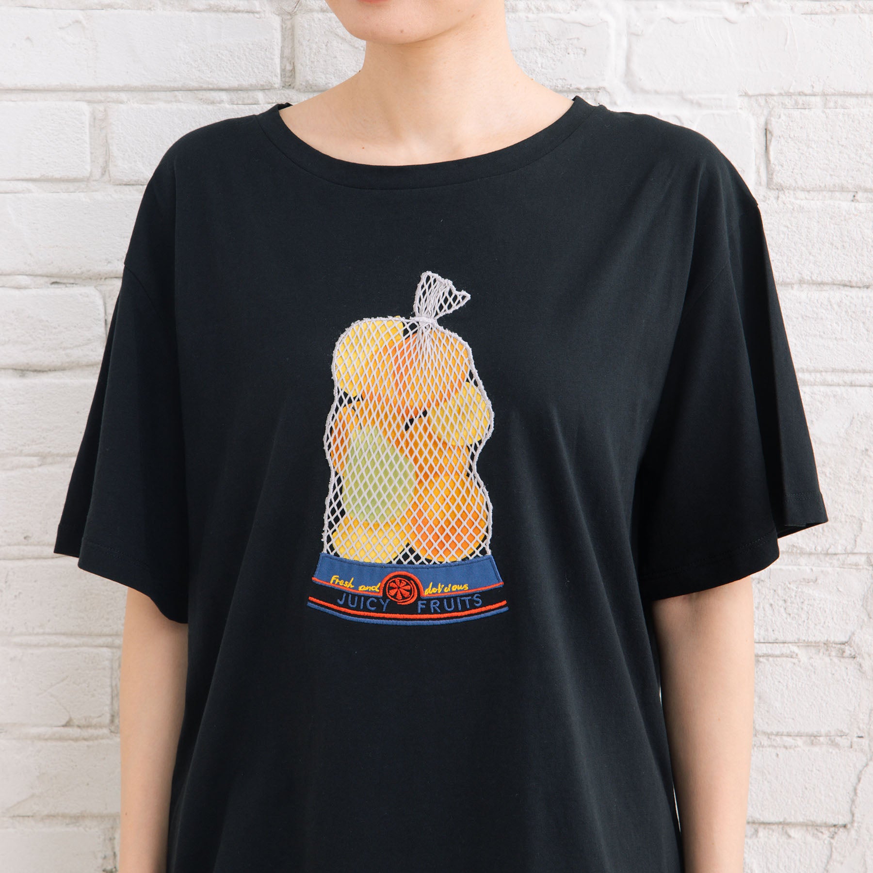 遊び心満載なトロンプルイユフルーツTシャツ。