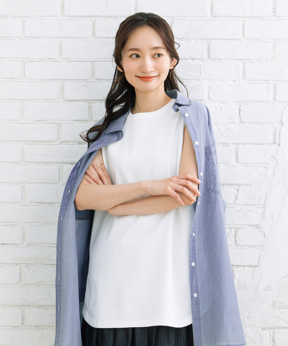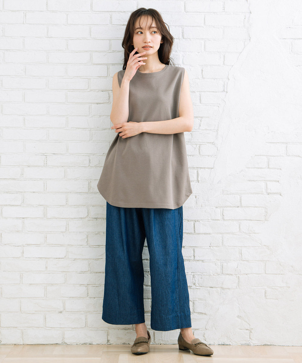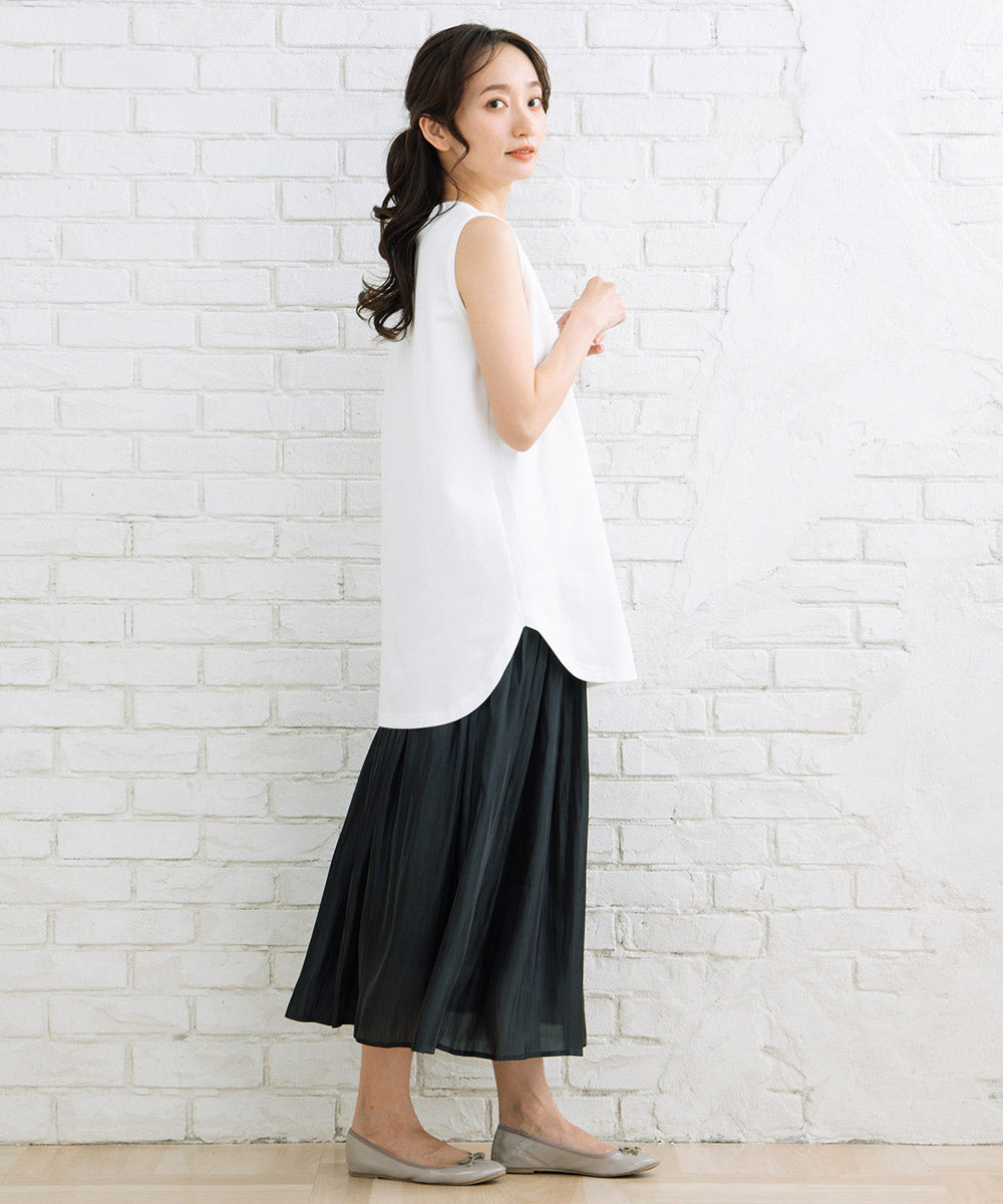 ベーシックなデザインで着回し力抜群のロングタンク。