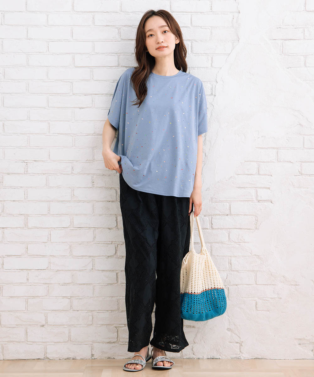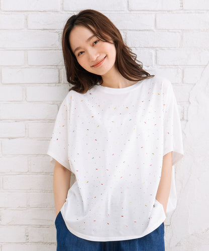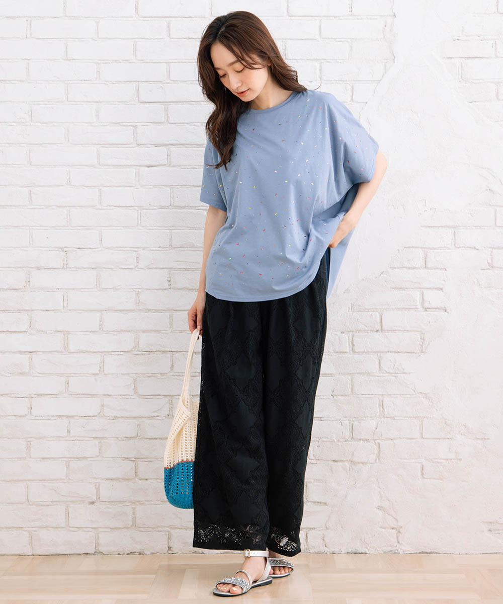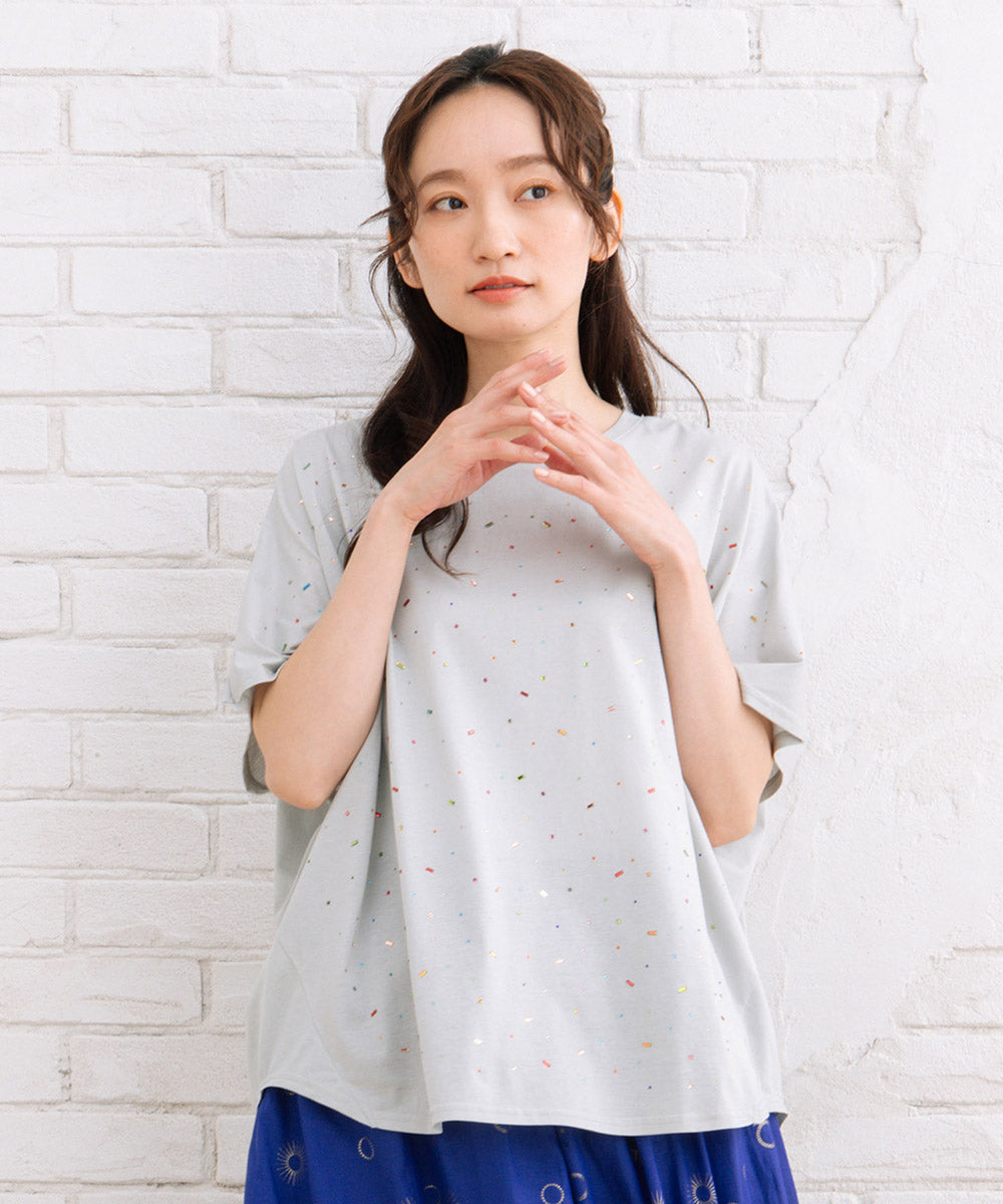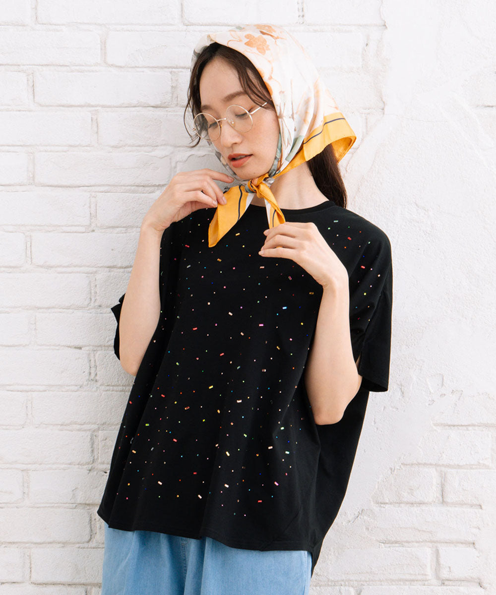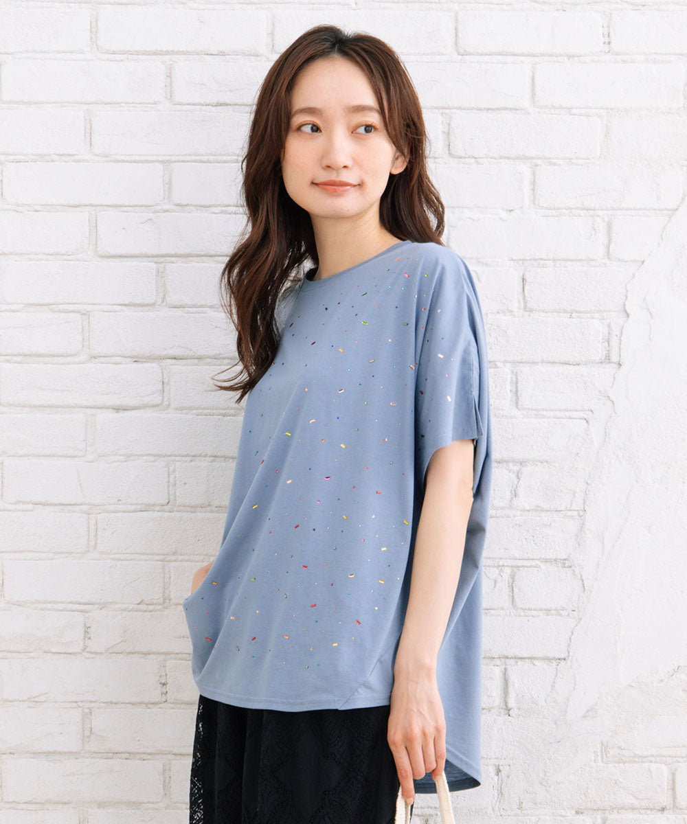 FONTLAB スプレー風ビジューデコレートワイドTシャツ