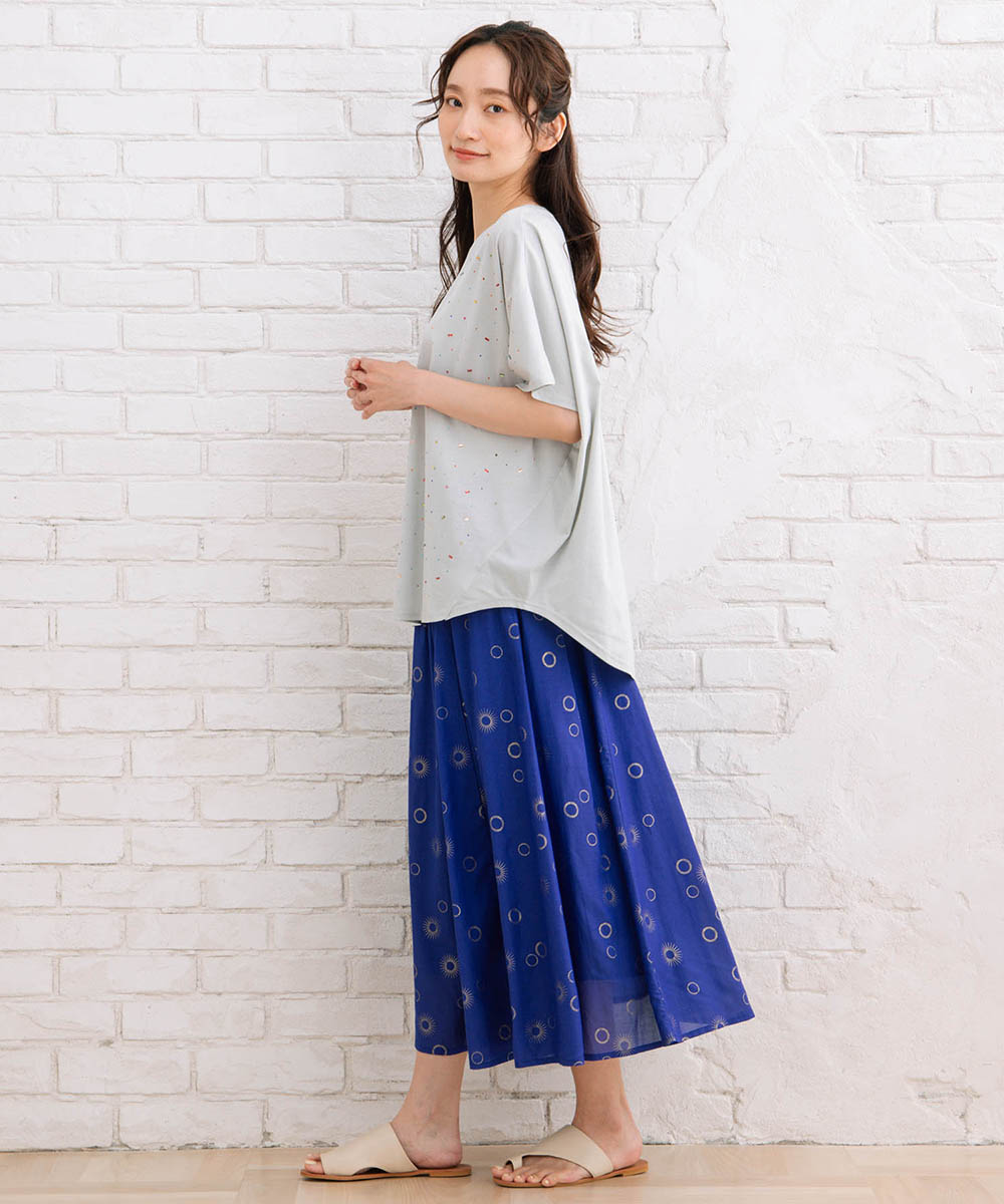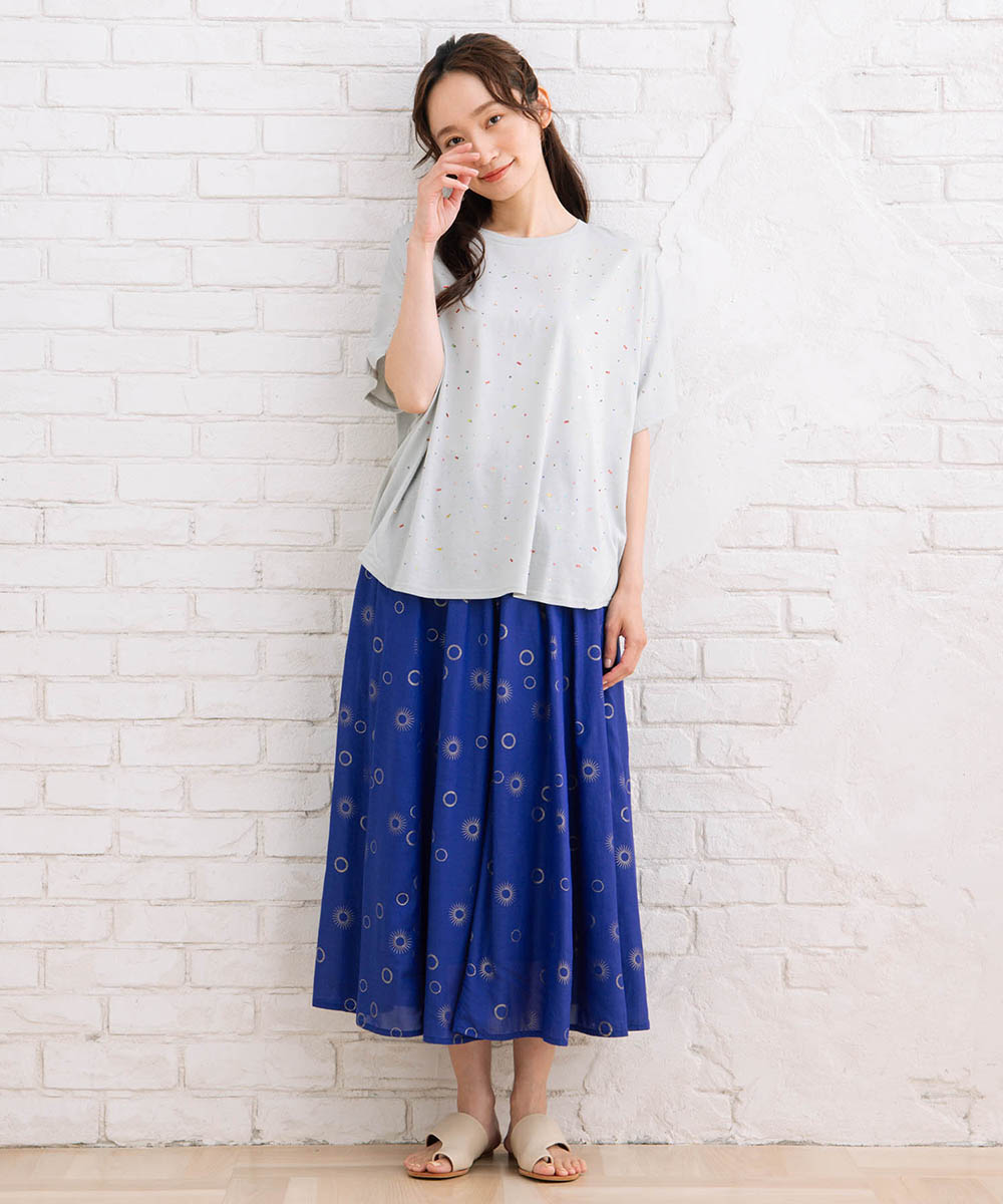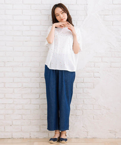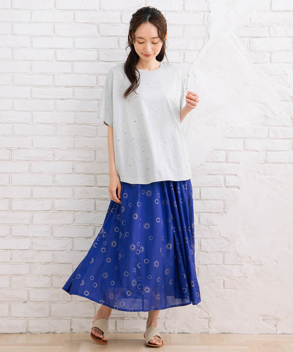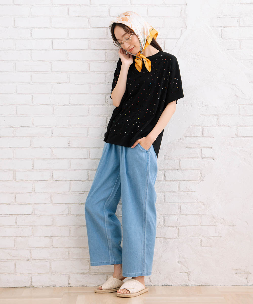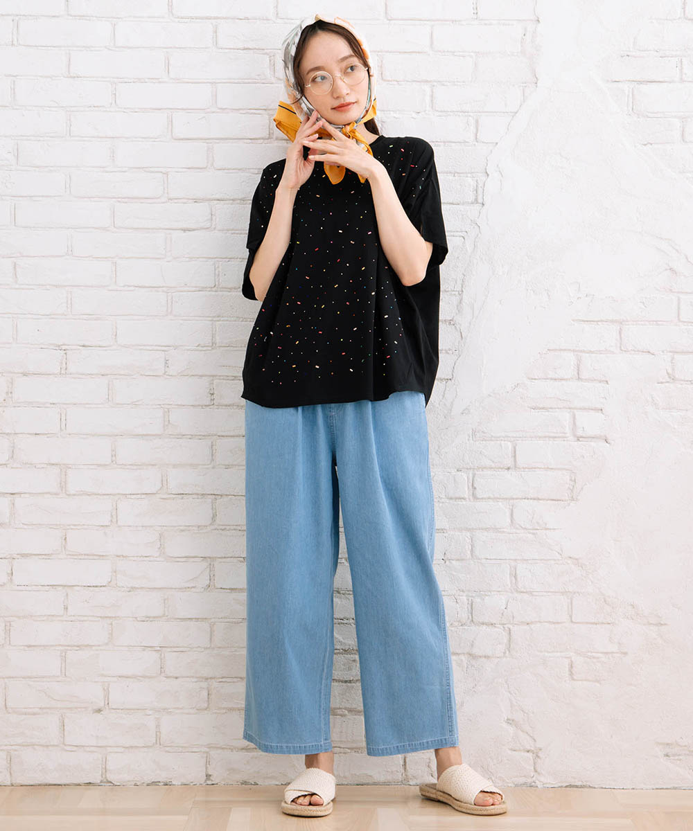 FONTLAB スプレー風ビジューデコレートワイドTシャツ