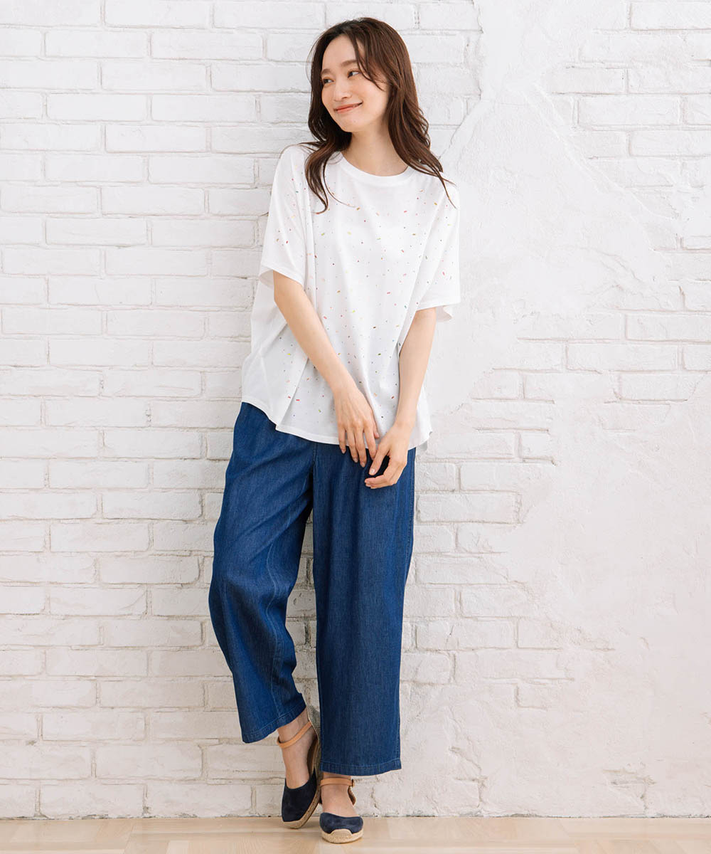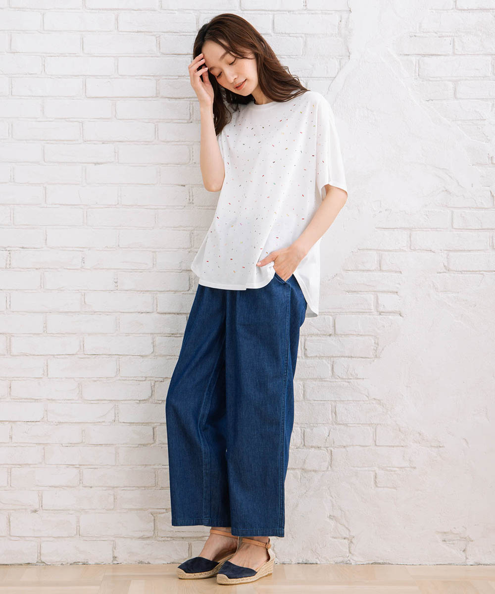 ゆったりとしたワイドシルエットで、リラックス感のある着心地。